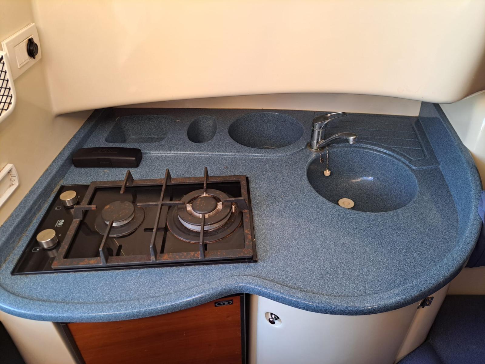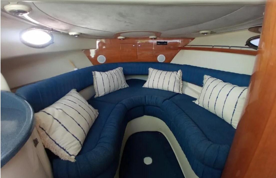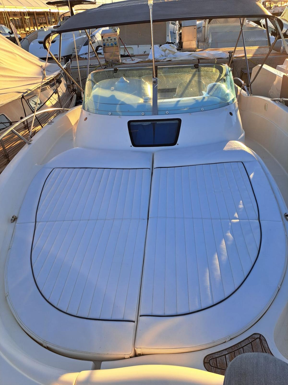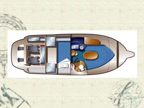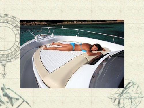 Promenez-vous avec 3 lits, cuisine équipée et toilettes marines qui dispose d’extérieurs exploités de manière très intelligente, avec le passage à la proue pratique et confortable pour aller à la proue, solarium et cockpit caractérisé par un canapé en forme de « L » et des fauteuils de guidage pivotants à 360 °