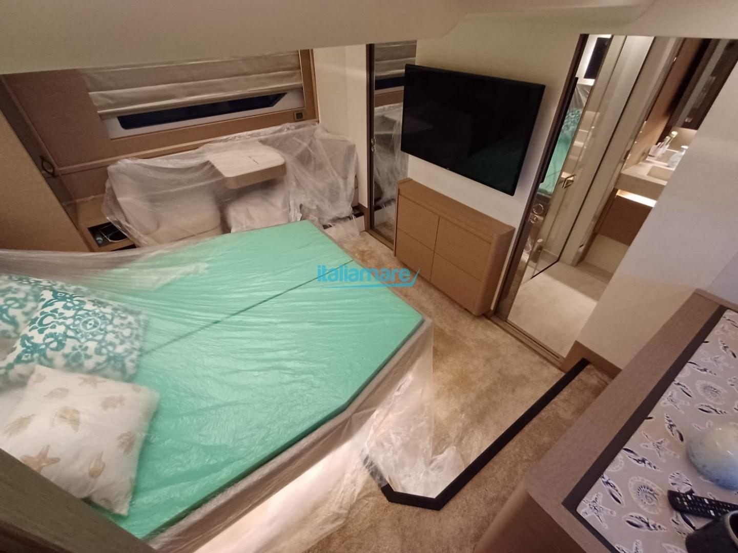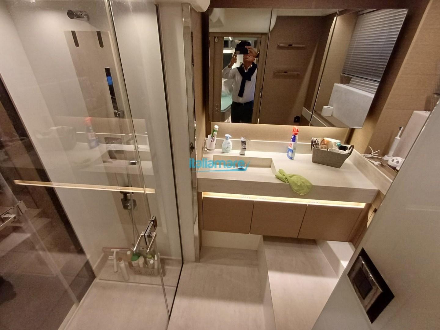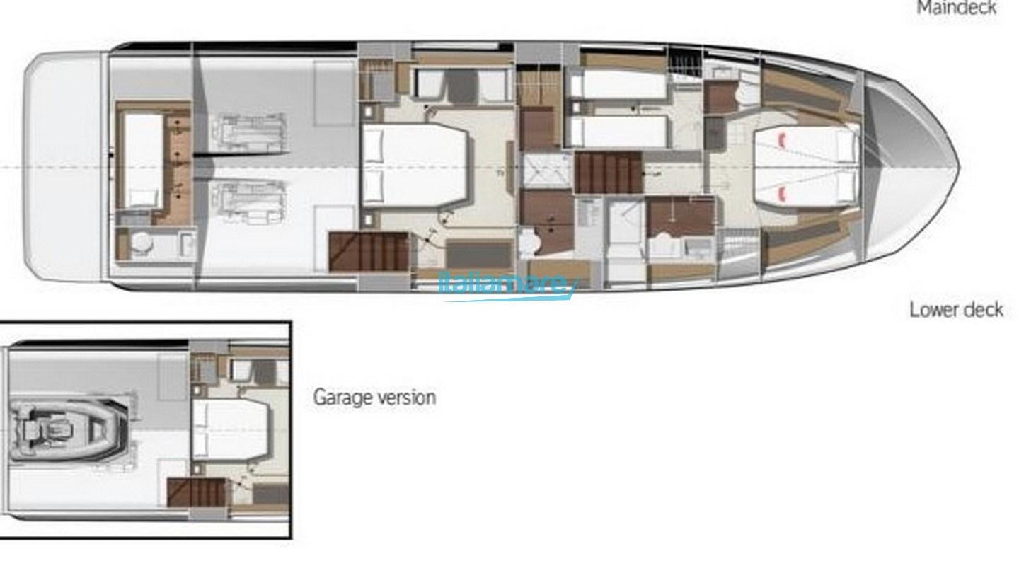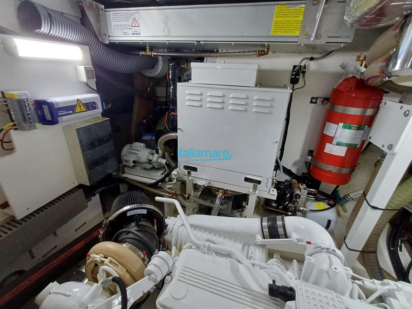 Accessoires principaux : climatisation, boussole, générateur, GPS, joystick, pilote automatique, passerelle hydraulique, plateforme hydraulique, teck dans le cockpit.