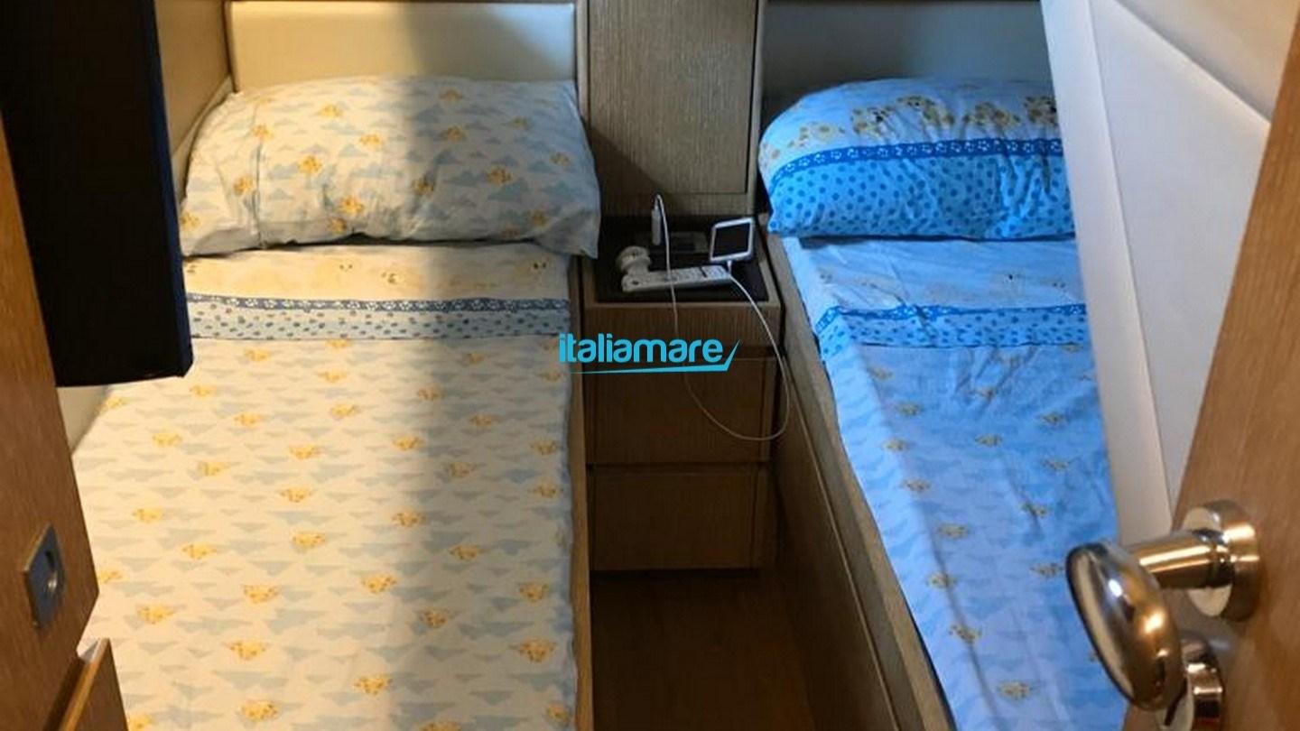 Accessoires principaux : Climatisation, GPS, Onduleur, Pilote automatique, Passerelle hydraulique, Radar, Teck dans le cockpit, TV.