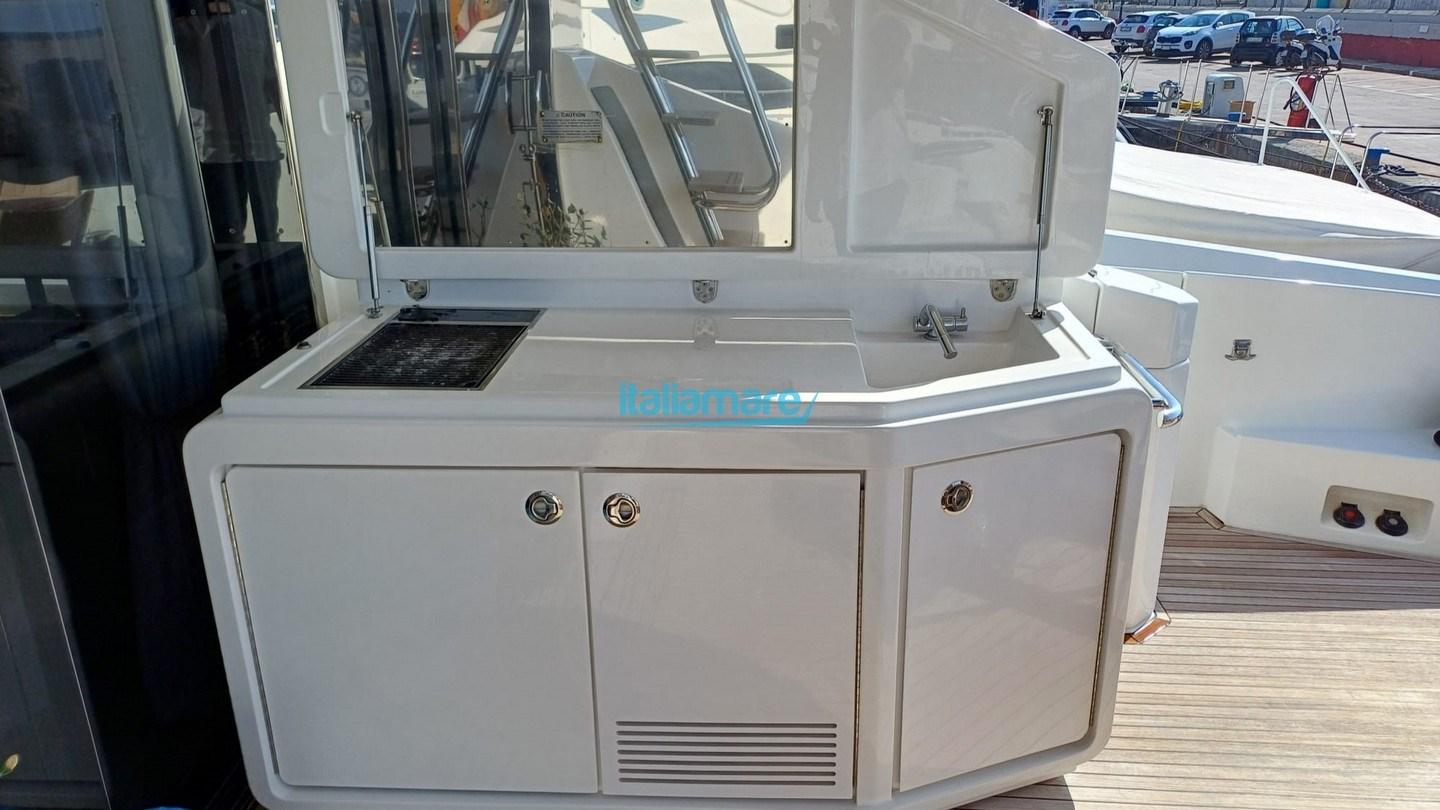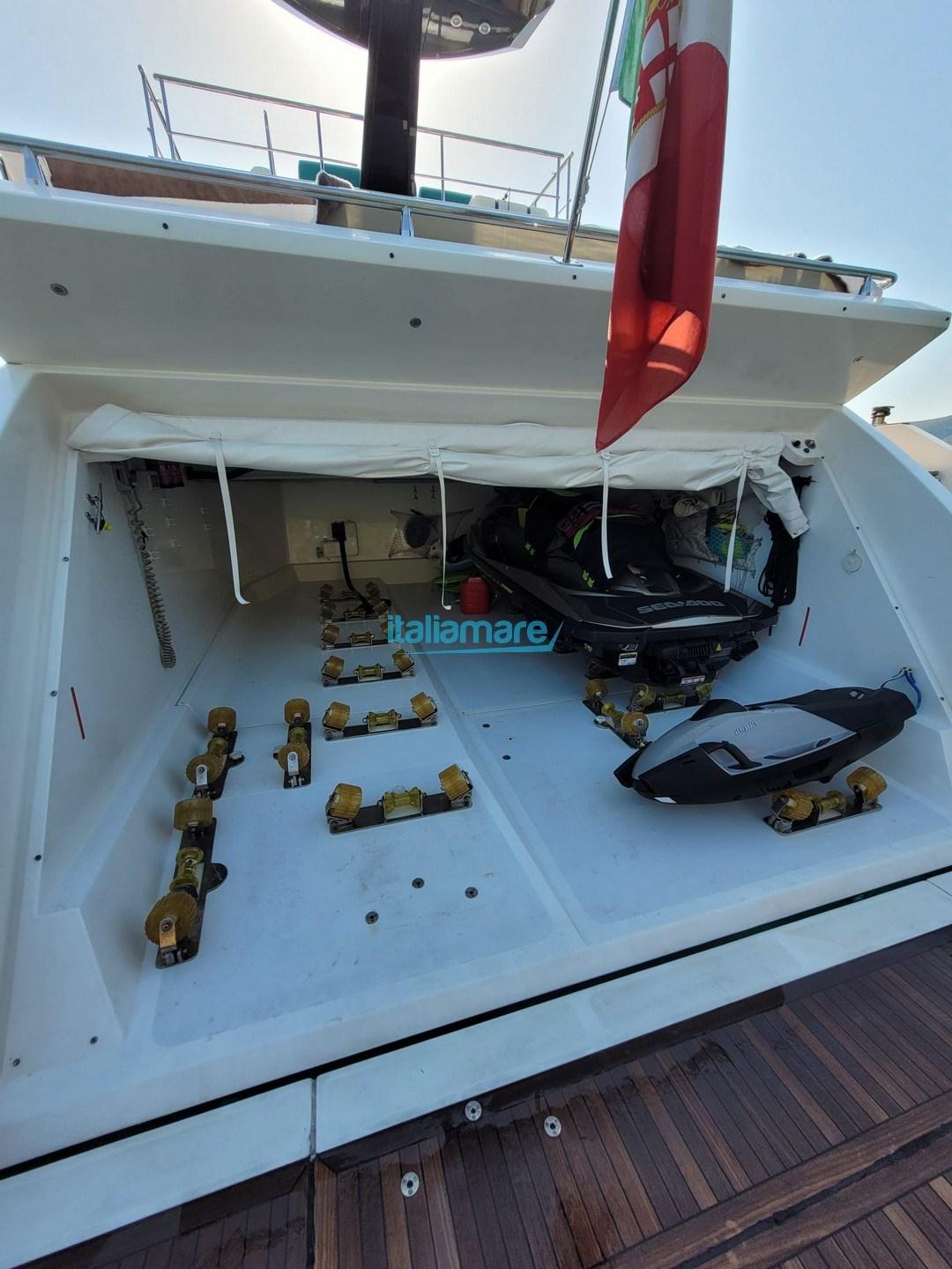 Principaux accessoires : Climatisation - Groupe électrogène Onan 27 kw - Passerelle hydraulique - Plate-forme hydraulique - Teck dans le cockpit - Passerelles latérales en teck - GPS - Radar - Pilote automatique - TV - Antenne satellite - Joystick - Dessalinisateur