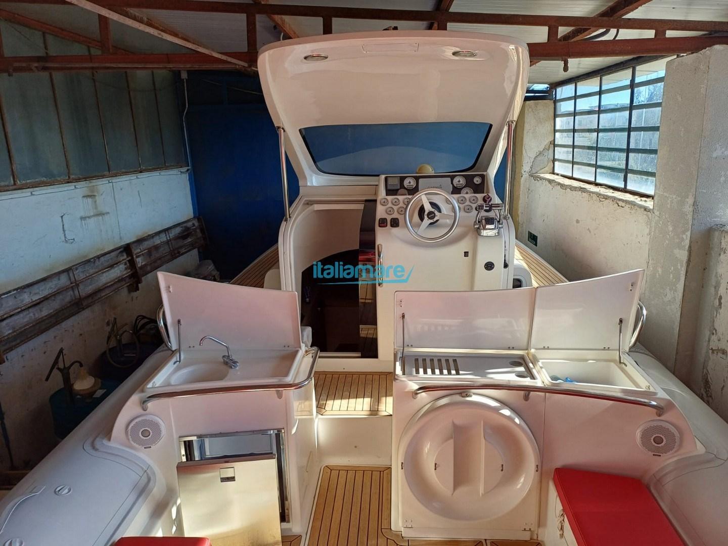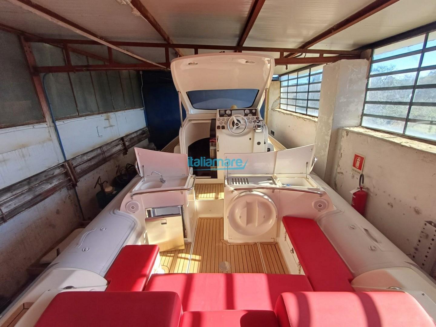 La coque est conçue pour offrir une vitesse et une sécurité élevées même en navigation rapide, représentant un mélange de semi-rigide haute performance et de day cruiser habitable.