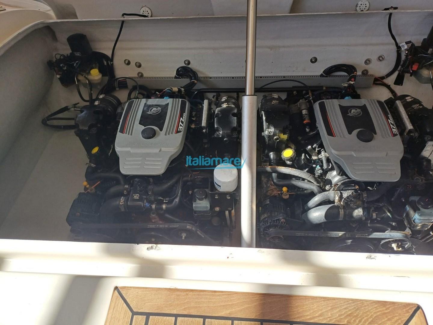 Propulsé par 2 Mercruisers de 370 ch, la vitesse de pointe dépasse les 40 nœuds, tandis que la croisière typique se situe entre 25 et 30 nœuds.