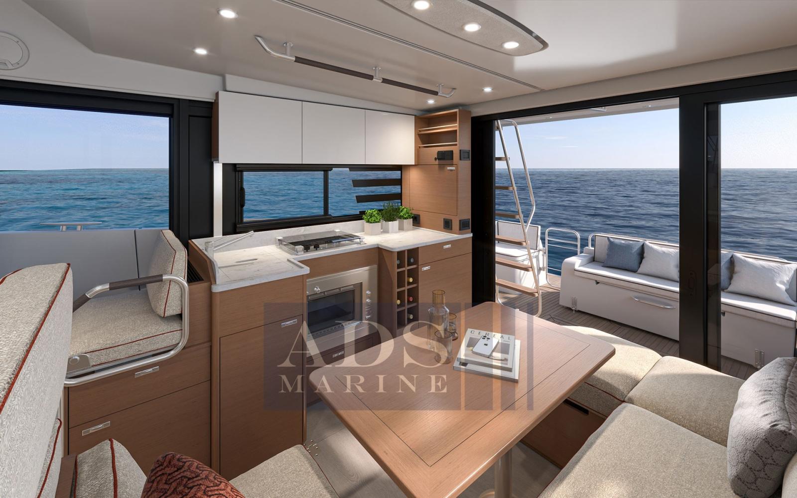 Conçu avec une ligne de voilage ascendante jusqu’à une étrave puissante, évasée et haute signature, le Swift Trawler 37 moderne embrasse la force et l’objectif. Le nouveau pare-brise inversé assure non seulement une meilleure visibilité, mais crée également un profil de chalutier plus professionnel, renforcé par les fenêtres de coque à rapport plus long. Le nouveau Swift Trawler 37 dispose d’une cuisine en forme de U plus grande que le modèle précédent de 35 pieds, avec une grande option de réfrigérateur et de congélateur et beaucoup plus de stockage grâce à l’ergonomie supérieure du triangle de travail. Le grand canapé en forme de U qui l’accompagne peut facilement accueillir six personnes et se transforme rapidement en une couchette double avec rideau d’intimité. Un siège de passage avant bâbord surélevé est doté d’une table relevable intelligente qui crée un poste de travail confortable adjacent à la barre. En bas, la cabine propriétaire est prioritaire et bénéficie désormais d’une salle de bain avec cabine de douche séparée et porte jack & jill (pour un accès en suite à côté d’une porte d’accès de jour).