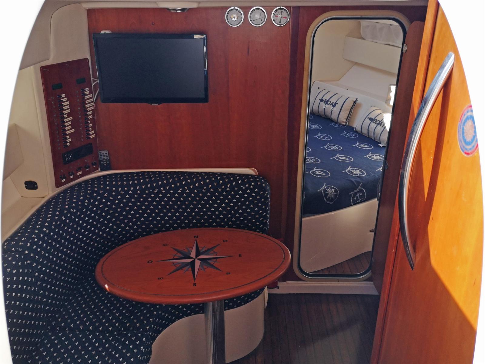Un bateau de 2006 stable et réactif, prêt pour la navigation grâce à l’entretien effectué sur les moteurs, les stern drives, les hélices, les guindeaux d’ancre et le teck.