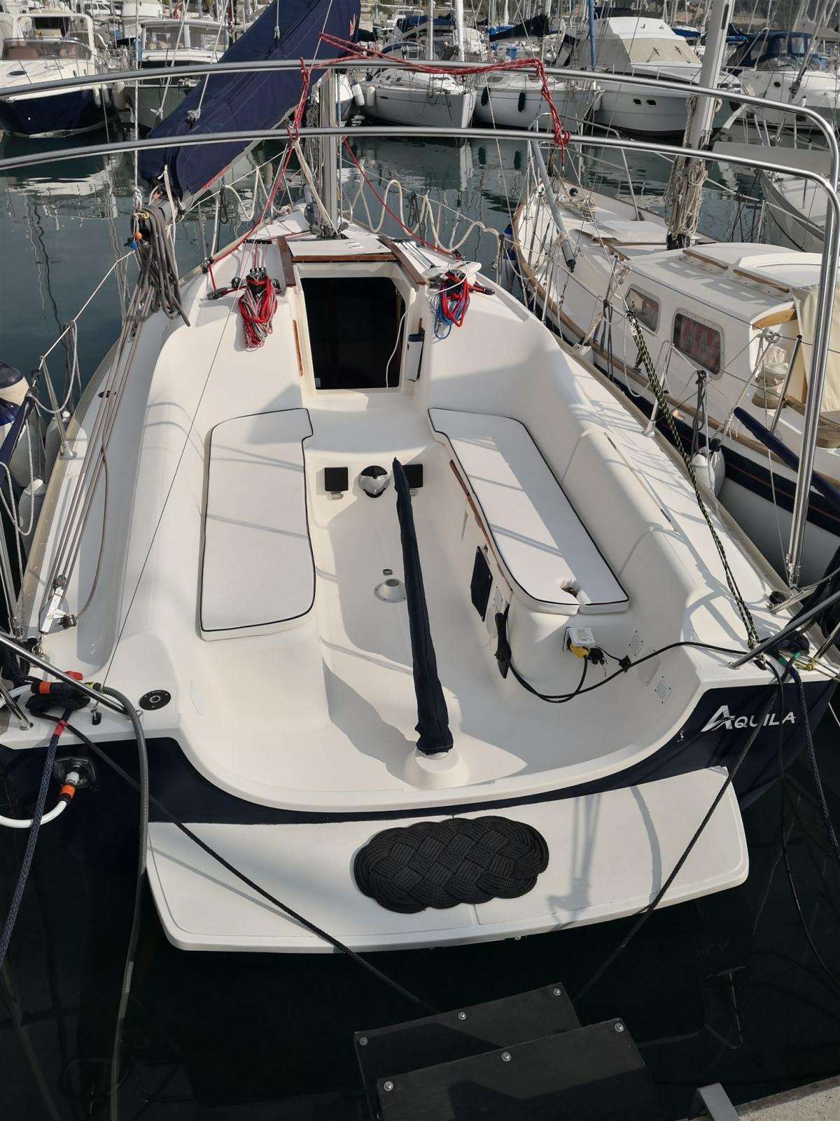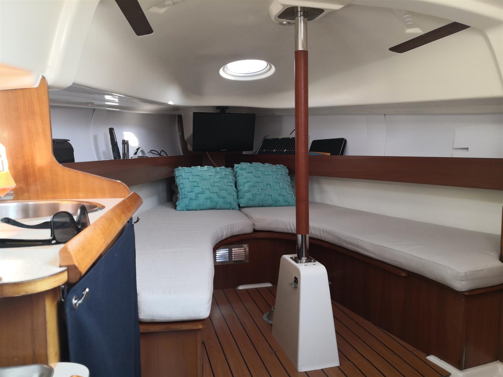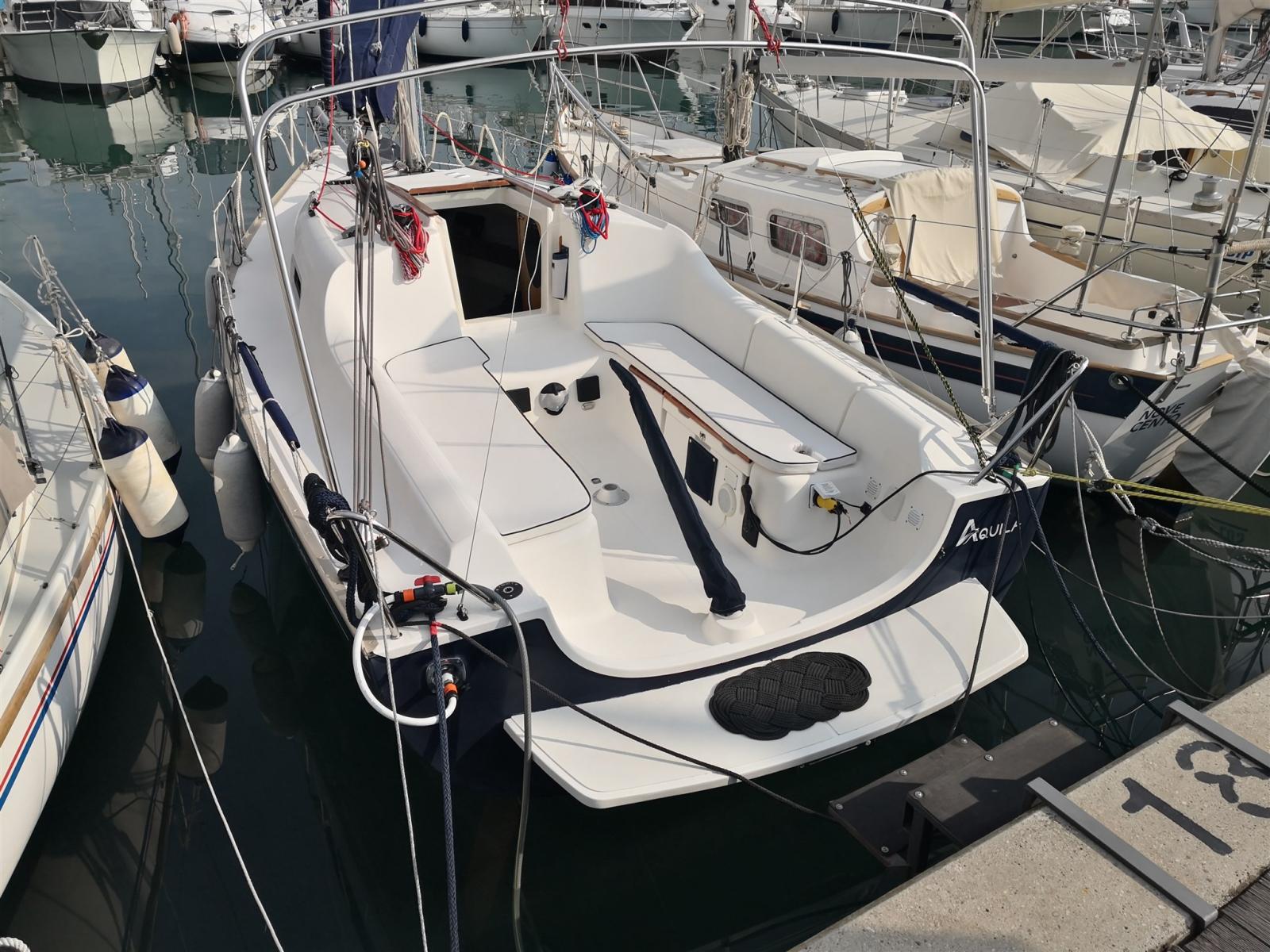 Métier. Open Sapce avec 2 couchettes doubles. 1 salle de bain avec toilettes manuelles. Instrumentation électronique Raymarine neuve 2025. Coque bleue. Nouveaux tailleurs 2025. Drisses et écoutes neuves 2025. Nouveaux robinets et passe-coques 2025. Lumières LED 2025. Nouveaux coussins 2025.