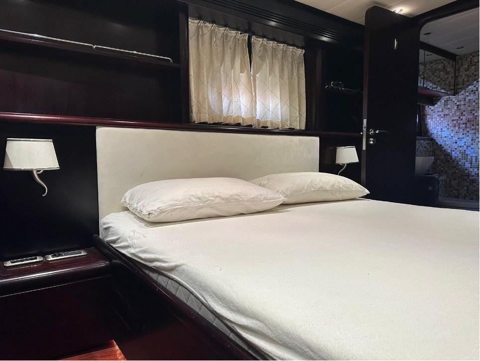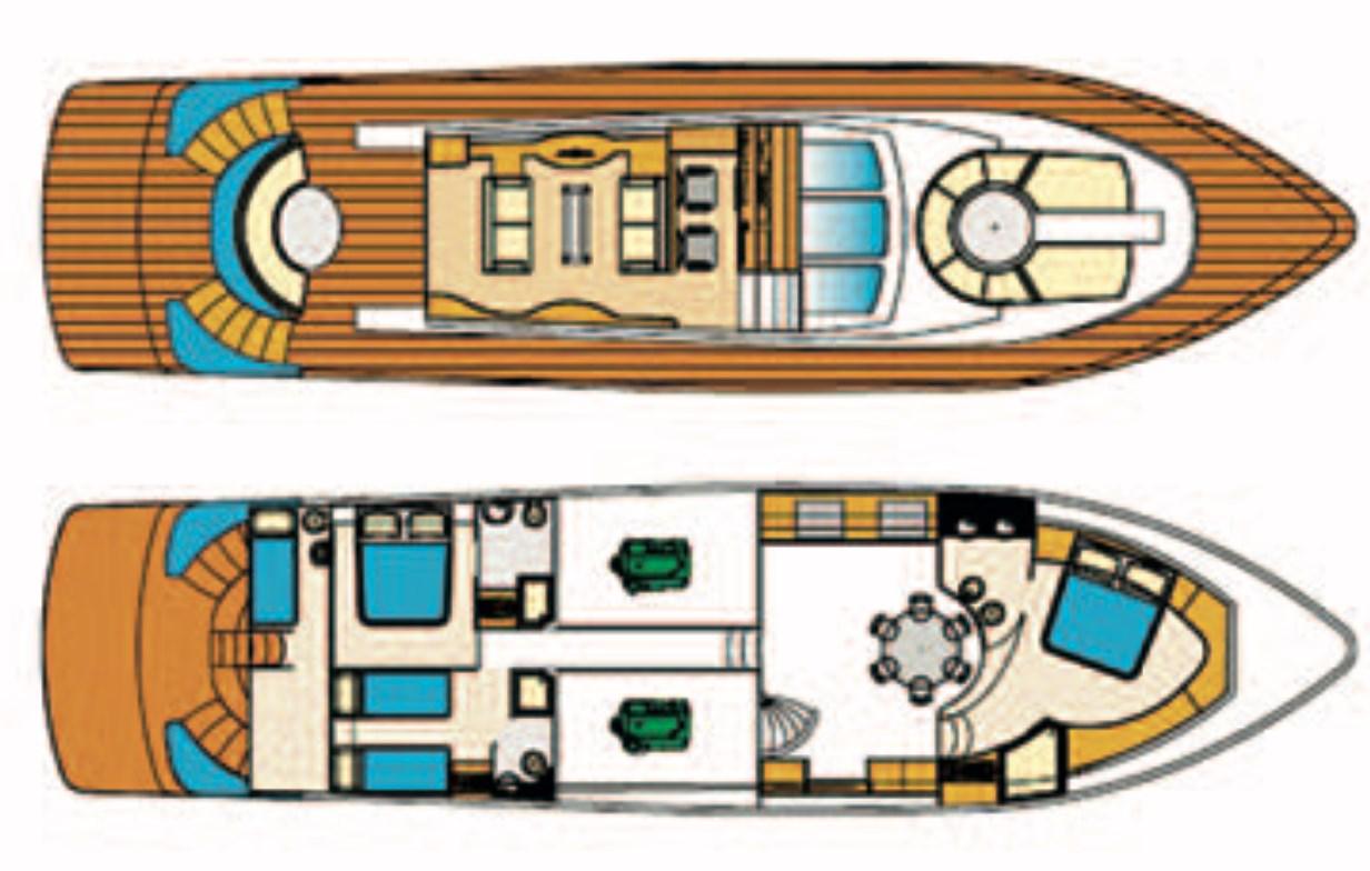 peinture complète de la coque et de la superstructure - rénovation du teck sur les passerelles latérales - installation d’une baignoire jacuzzi à l’avant - nouveaux plafonds avec éclairage LED.