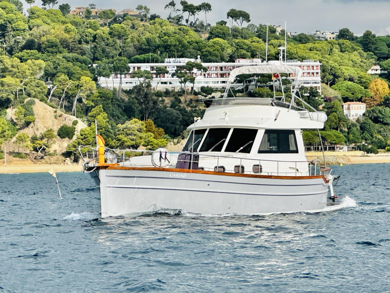 La coque a été repeinte et polie l'année dernière, toutes les vannes de coque ont été remplacées, le bateau est équipé d'un compteur de chaîne, toutes les batteries sont neuves, et les auvents supérieur et inférieur sont également neufs.