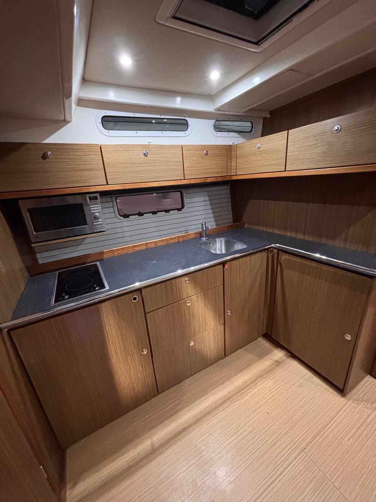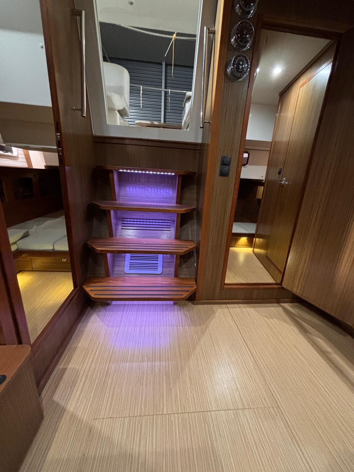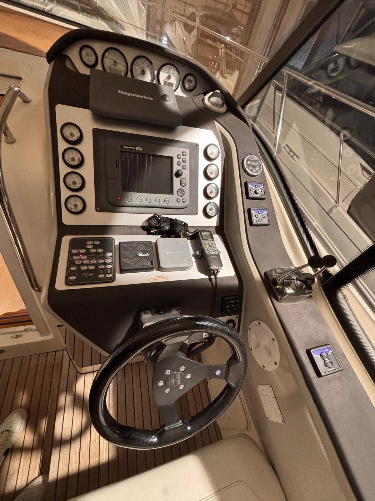 Alarme gaz, Alarme moteur, Alarme de pompe de cale, Douche de cockpit, Garage à annexe, Hard top, Cockpit en teck, Guindeau électrique.