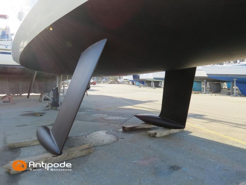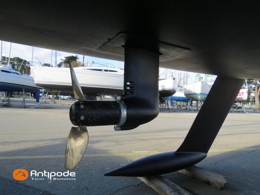 Equipé en bi-quille, sans perte de performance ni de stabilité, mais qui permet : la navigation en eaux peu profonde et l'accès à des ports de faible profondeur (Vannes, La Rochelle Vieux Port, etc) ou avec chenal d'accès peu profond ; un échouage très facile, avec notamment de belles escales dans le port de Sauzon.