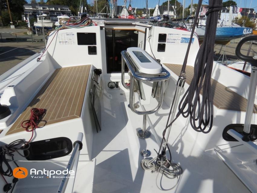 DJANGO 980, 2021, 1ère main, Yanmar 3YM30, 30 cv (1066 h), Version Bi-quille avec béquille arrière pour échouage, Bi-safran, Version d'aménagement intérieur 1 cabine avant ouverte, 2 cabines arrières, Porte pour la cabine arrière tribord, Rideaux pour fermeture lit breton et cabine arrière babord, Pack finition bois et rideaux occultant pour tous les hublots, 1 cabinet de toilette et douche, Panneau ouvrant supplémentaire dans cabine arrière tribord, Bout-dehors rétractable pour spi asymétrique - Selden, Assises de cockpit lattées flexy teck, Table de cockpit avec abattants , Capote de roof, Taud de soleil zippable sur lazybag, Guindeau électrique 800W, Télécommande guindeau sans fil, Etai remplacé en 2025, Grand-voile full batten en DCX (état moyen), Rail de guindant de grand voile + chariots de lattes (2022), Lazy-bag de grand voile, Lazy-jacks de grand voile, Enrouleur de génois avec tambour sur le pont - Facnor Flat Deck 190, Génois sur enrouleur en DCX, Trinquette sur emmagasineur FX2500, Gréement de spi classique, Tangon aluminium, Spinnaker triradial classique + chaussette, Spinnaker asymétrique + chaussette - Technique Voile, Code 0 - 56m² sur emmagasineur FX2500, Pilote automatique in board Raymarine, ACU-200, vérin type 1 et pupitre P70s, Répétiteurs Raymarine I70s cockpit, GPS / lecteur de carte dans le cockpit - Axiom 9, Cartographie électronique, Transpondeur AIS (émetteur récepteur) - Raymarine AIS700, VHF ASN à la table à carte - Raymarine Ray63, Système audio Fusion + HP, Unité réfrigérante 12 V ouverture par le dessus, Chauffe-eau 220 V + échangeur, Eau chaude et froide sous pression, Gazinière 2 feux + four, Prise de quai 220 V + chargeur de batteries Cristec, Batterie moteur, 2 x Batteries service (2 x 77Ah), Contrôleur / gestionnaire de batteries - Victron Energy, Chauffage WEBASTO, Réservoir rigide eaux noires, Douchette de cockpit eau froide, Feux de navigations à Leds, Eclairages intérieurs à Leds, Radeau de survie Plastimo Transocean 6 personnes (prochaine révision 2027), Equipement de sécurité semi-hauturier 6 pers., Mouillage principal ancre Fob rock 12kg + 25m de chaine + 25m de cablot, Amarres et défenses, Visible Bretagne. Pour plus d'informations ou pour fixer un rendez-vous de visite, contact : Jean-Baptiste Lemaire 06 10 25 00 03 - [email protected]
