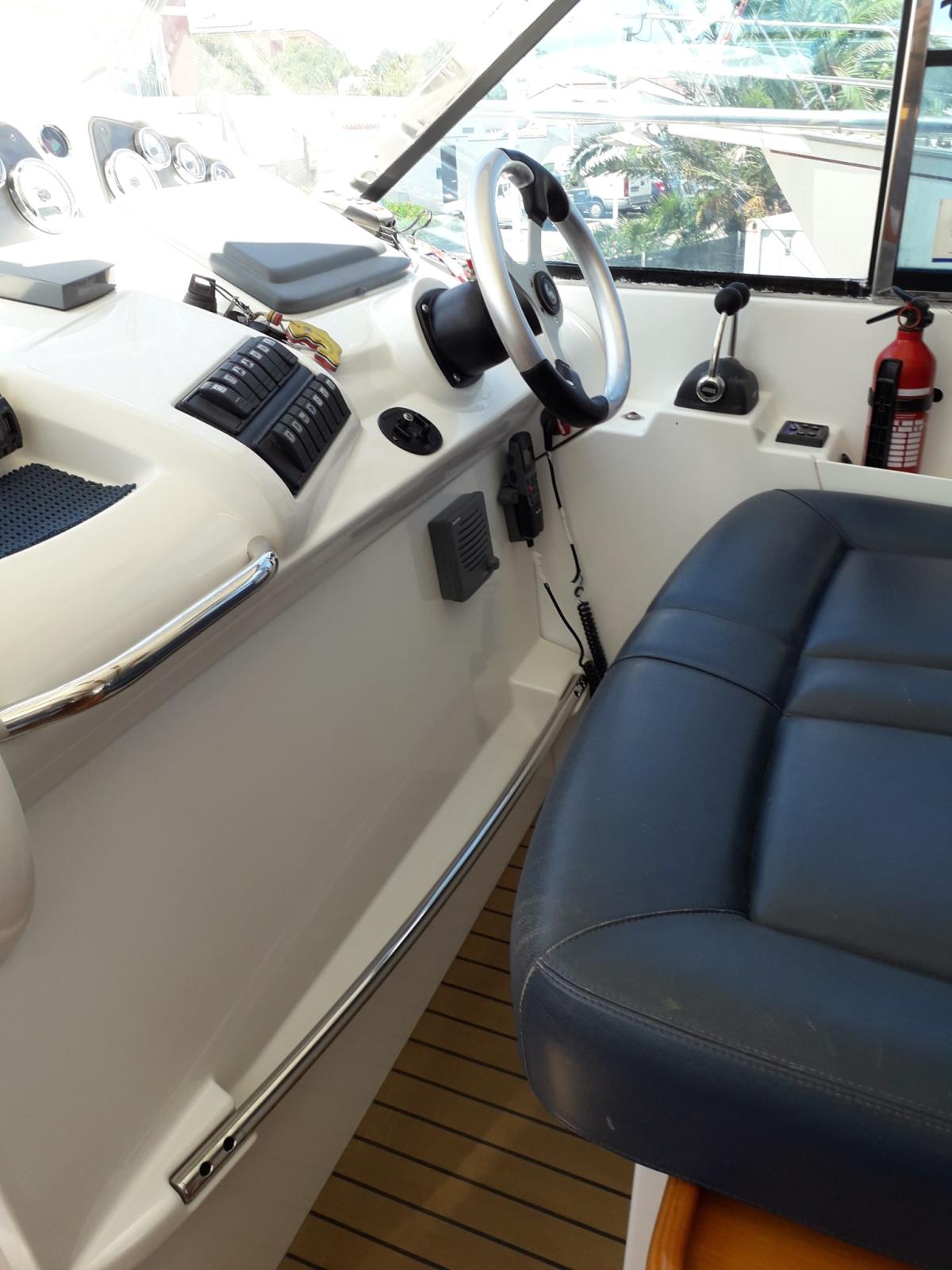 Beneteau Antares 12 Fly Sport de 2007 avec deux Volvo Penta D6 370 chevaux, moteurs atterrissés à zéro heure en 2022. Deux cabines avec lits doubles et salles de bains indépendantes, une partie salon avec cuisine, réfrigérateur, micro-ondes, grand canapé, télévision, animation, chaîne stéréo, pompe à chaleur, climatisation dans toutes les pièces. Raymarine, Raymarine Fishfinder, traceurs de cartes Raymarine (station intérieure E120, station E80 flybridge, pilote automatique Raymarine ST6001, télécommande intelligente pour le contrôle de la navigation et le pilote automatique, boussole magnétique (à l’intérieur et sur la passerelle), GPS Raymarin, Raymarine VHF (à l’intérieur et sur la passerelle), indicateur de gouvernail (à l’intérieur et à la passerelle), TV numérique terrestre avec antenne et amplificateur, Radio avec haut-parleurs dans le cockpit et la passerelle de vie de la passerelle, réfrigérateur, congélateur, micro-ondes, plaque électrique DE Dietrich, deux sièges et un lavabo avec deux lavabos, tous rabattables et rétractables, chaudière électrique Quick BX50, pompe à chaleur climatisée de 12000 BTU (chaud froid) Vitrifrigo avec bouches d’aération indépendantes dans chaque cabine + espace de vie. chargeur automatique de batteries, batteries gel 2024 (motorright, motoresx, utilités) toilettes électriques marines N2 Jabsco avec réservoirs, un pour chaque cabine, pompe de cale électrique, pompe de cale manuelle (logée au mur dans le puisard), barbecue électrique grille de cuisine de dietrich intégré externe dans le puisard. Cockpit en teck, douche avec réglage de la température de l’eau, 4 chaises pliantes en teck, échelle de nage électrique, passerelles hydrauliques en teck Besenzoni, propulseur d’étrave max série 100 Duo, contrôlables depuis la position interne de la passerelle d’équipage, volets de stabilisation QL, contrôlables depuis la position interne depuis la passerelle d’équipage. Feu réglable Jabsco 60080 à la proue, contrôlé depuis une position interne pour la vue nocturne jusqu’à 100 m, guindlon électrique pouvant être contrôlé depuis toute la position depuis la mouche et localement à la proue, chaîne d’ancre en acier + cateena en acier inoxydable, échelle d’accès en teck à la passerelle d’équipage. Teander 2023, pneumatique bleu marine blanc, moteur électrique, batterie lithium 50A/h dans un sac homologué pour le transport