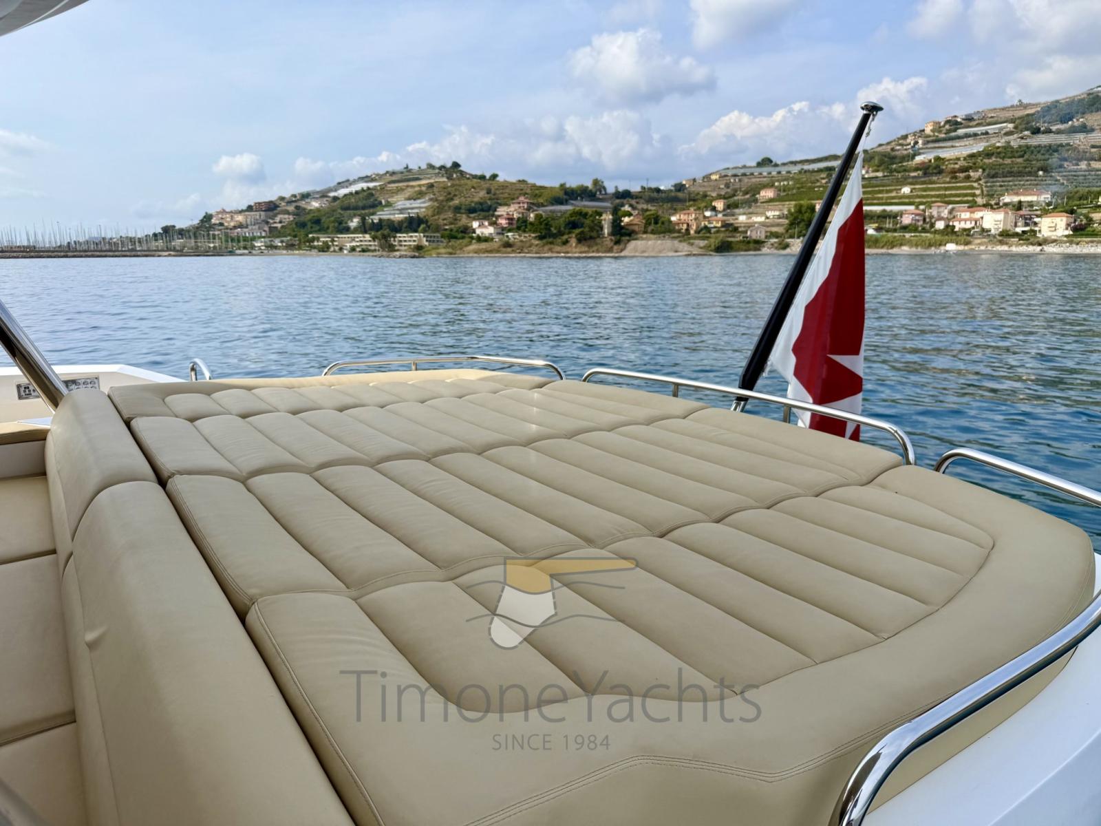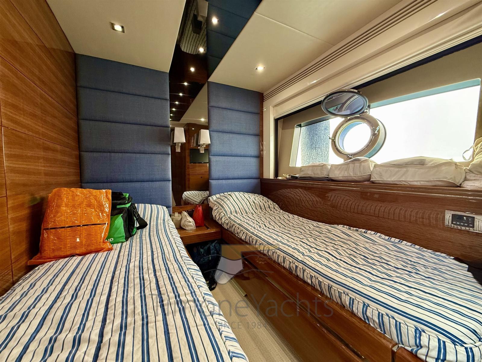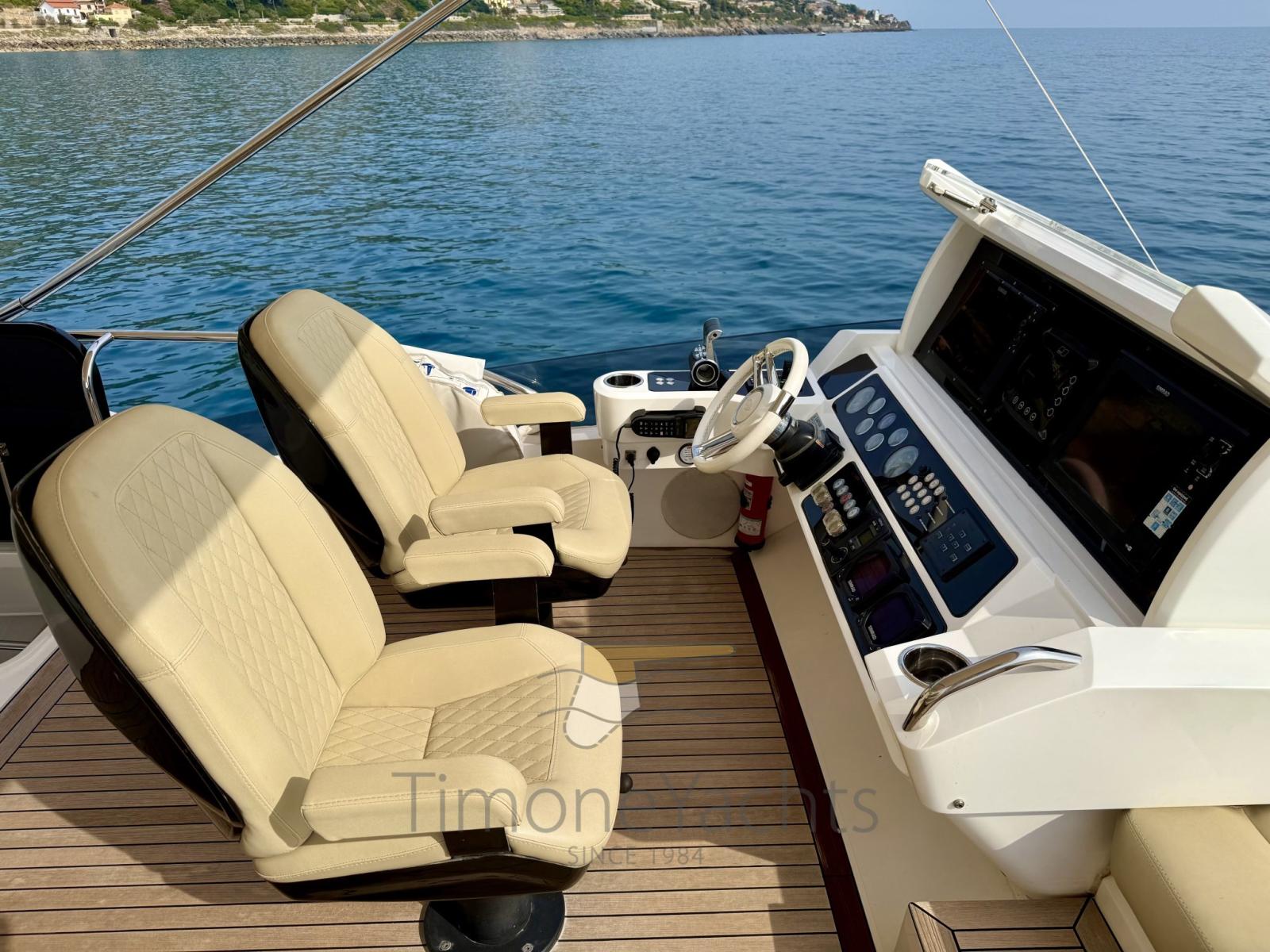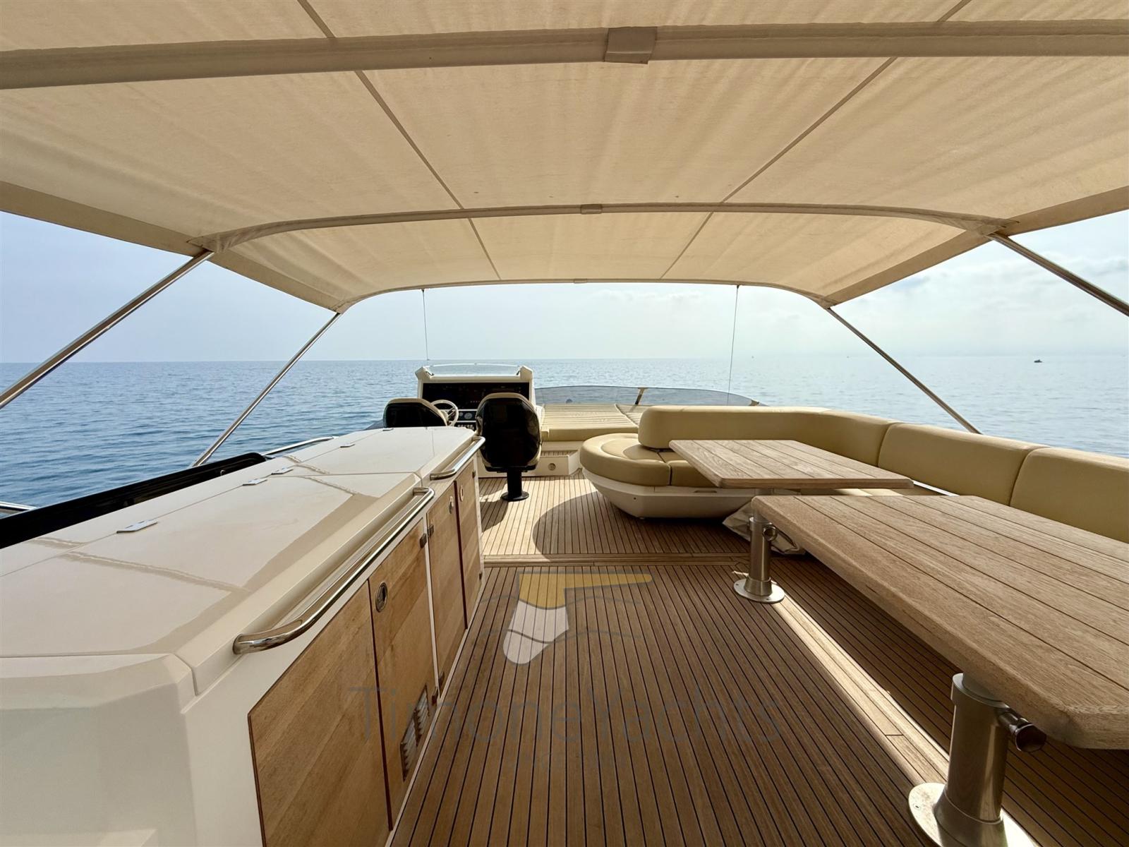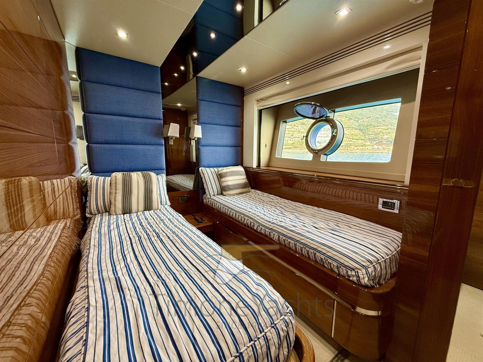La ligne élégante et agressive est unique, les espaces extérieurs sont grands et très bien agencés. La sensation que l’on ressent en étant dans le cockpit arrière, à la volée ou sur le pont avant est très confortable. Les logements sont également confortables, avec 4 grandes cabines d’invités, chacune avec une salle de bain privée + équipage. Garage à annexe et plate-forme arrière.