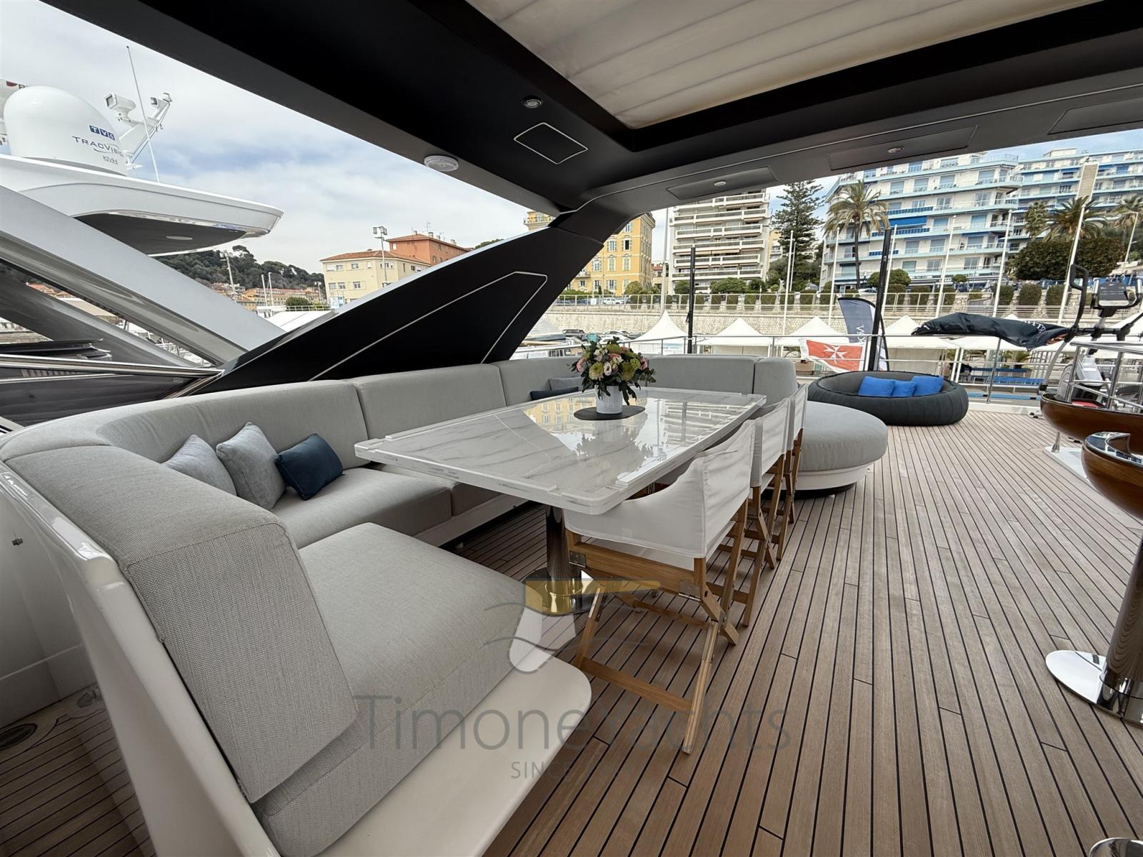 Équipé d’options et d’améliorations avancées, d’un flybridge spacieux et d’une plate-forme arrière de style club de plage, parfaite pour se détendre ou se divertir en mer.