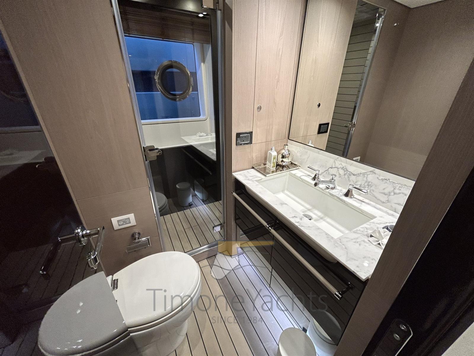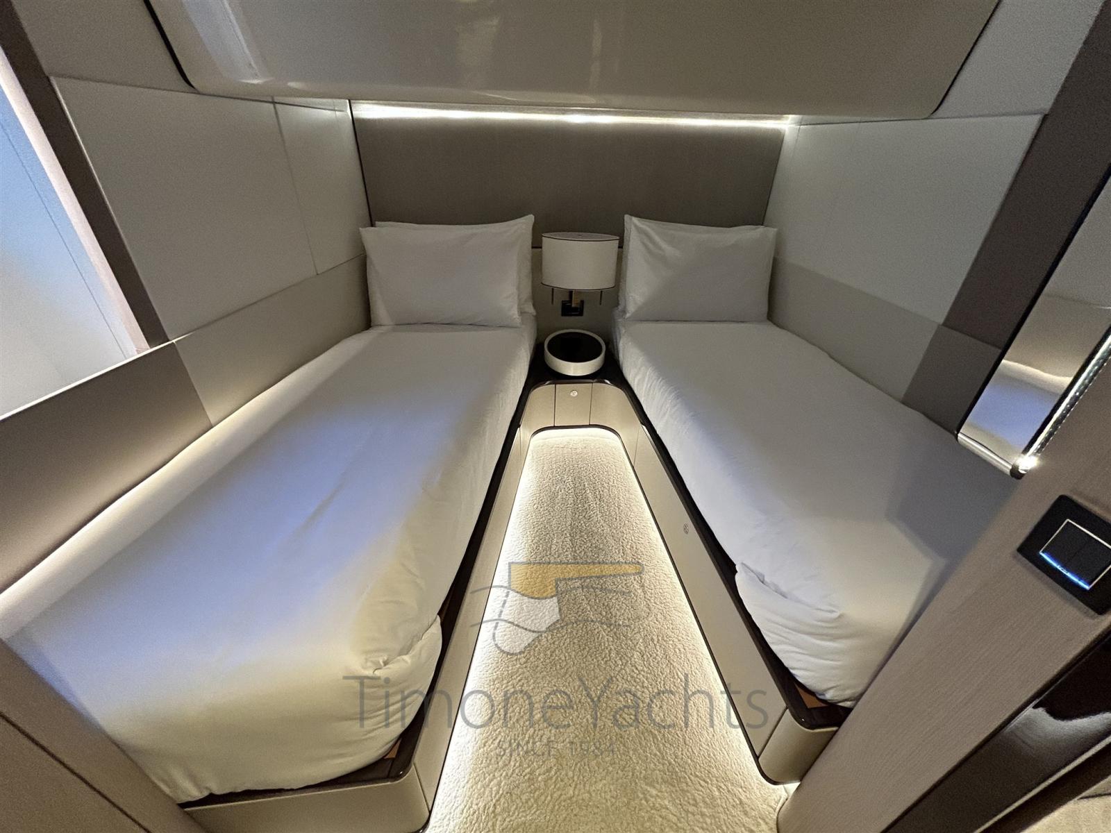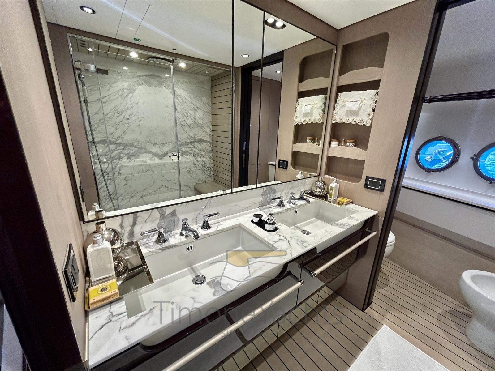 Auto Dynamic Trim Interceptor, Trim hydraulique, Passavant en teck, Douche de cockpit, Phare de poursuite, Flaps hydrauliques, Garage à annexe, Hard top, Indicateurs de flaps, Lavage de chaine, Éclairage de courtoisie, Spots sous-marins, Passerelle, 2 Porte latérale, Cockpit en teck, Prise de quai, Stabilisateurs (fins (underway + zero speed)), table de cockpit, Annexe, Corne, 2 Winch électrique arrière, 2 Winch électrique avant.