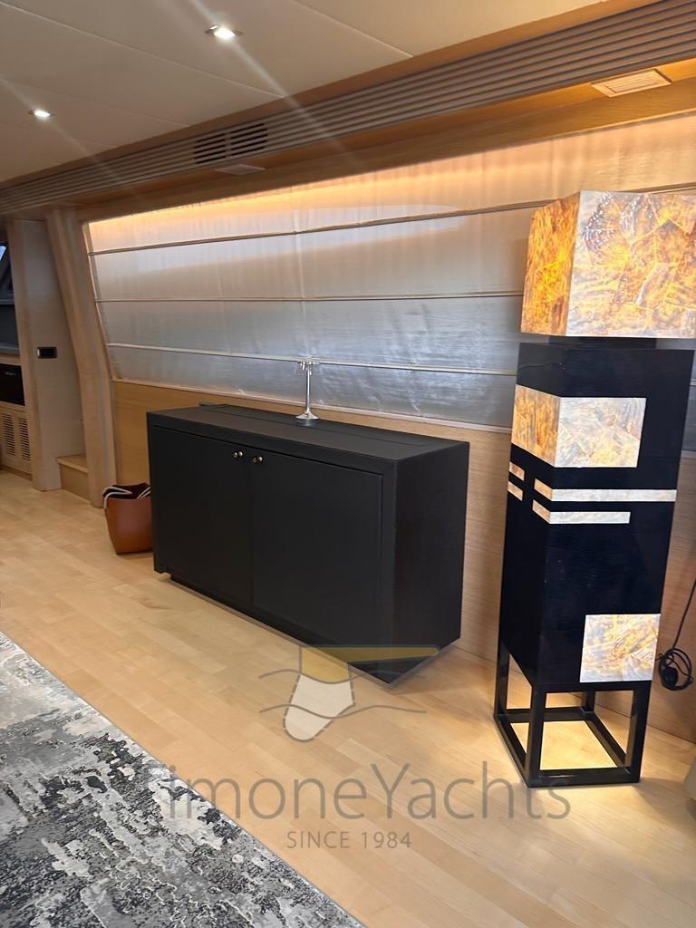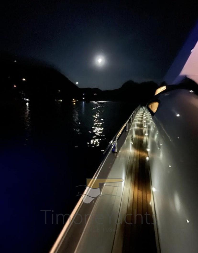 Taquets pliants, Passavant en teck, Douche de cockpit, Phare de poursuite, Flaps hydrauliques, Garage à annexe, Hard top, Extincteur(s) fixe(s), Indicateurs de flaps, Lavage de chaine, Spots sous-marins, Passerelle, 2 Porte latérale, Cockpit en teck, Prise de quai, Connexion eau sous pression à quai, table de cockpit, Corne, 2 Winch électrique arrière, Winch électrique avant.