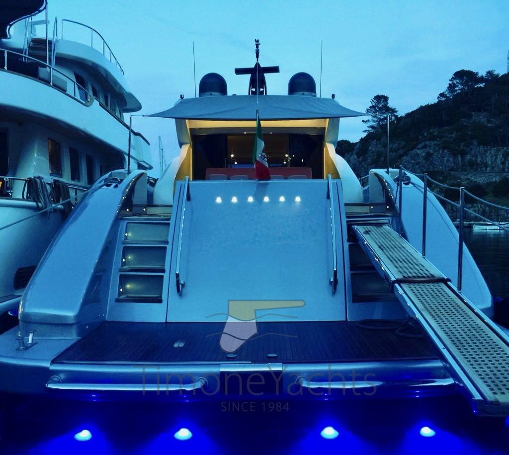 la cabine principale au milieu des navires avec vanité et vestiaire et deux cabines VIP avec salle de bains aussi, (toutes) décorées de mosaïques et équipées de bidet. En avant, sous la cuisine / salle à manger, nous obtenons un énorme rangement de plain-pied. La décoration est fraîche et moderne, avec des menuiseries en chêne clair et des garnitures wengé' ainsi que du parquet. Le bateau dispose d’une liste très longue d’extras, y compris à titre d’exemple: double générateur 220v (20Kw Kholer chacun), dessalinisateur, double antenne dôme SAT TV + TEL, traceur de cartes, radar à réseau ouvert et climatisation complète avec puissance « tropicale », système de divertissement complet avec TV 52 led up-down, décodeur satellite, etc. Quincaillerie de cuisine de Miele w / four traditionnel (ouverture de 90cm) + micro-ondes, deux réfrigérateurs verticaux de style maison, congélateur séparé, lave-vaisselle, machine à glaçons, coin lundry avec laveuse et sécheuse. L’état général parfait et clé en main, ainsi que l’utilisation légère, en plus d’une paire de moteurs Caterpillar puissants et fiables, mais pas extrêmes, en font une opportunité unique sur le marché, d’acheter un prestigieux yacht à moteur fabriqué à Viareggio pour une fraction d’un nouveau similaire! A noter : nouvelle sellerie intérieure à partir de 2019/2022, heures moteur légères, service constant chaque année, équipage professionnel toute l’année