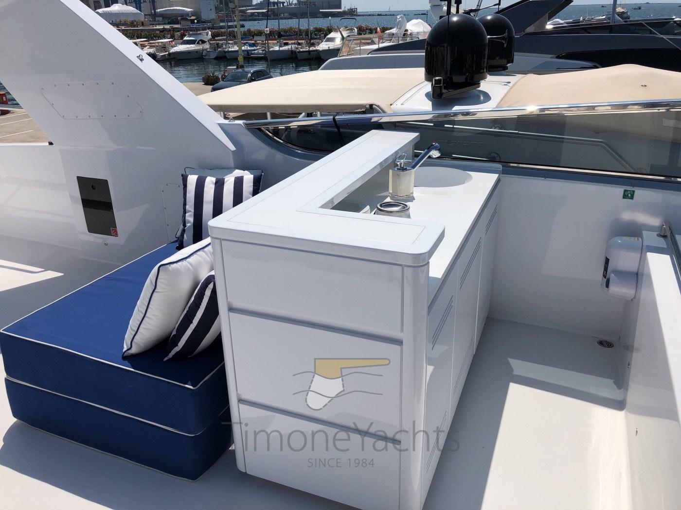 Trim hydraulique, Douche de cockpit, Flaps électriques, Grue de flybridge, Extincteur(s) fixe(s), Indicateurs de flaps, Lavage de chaine, Passerelle, 2 Porte latérale, Cockpit en teck, Prise de quai, Connexion eau sous pression à quai, Système de filtration des eaux usées, Stabilisateurs (Seakeeper NG26), table de cockpit, Annexe, Corne, 2 Winch électrique arrière, Winch électrique avant.