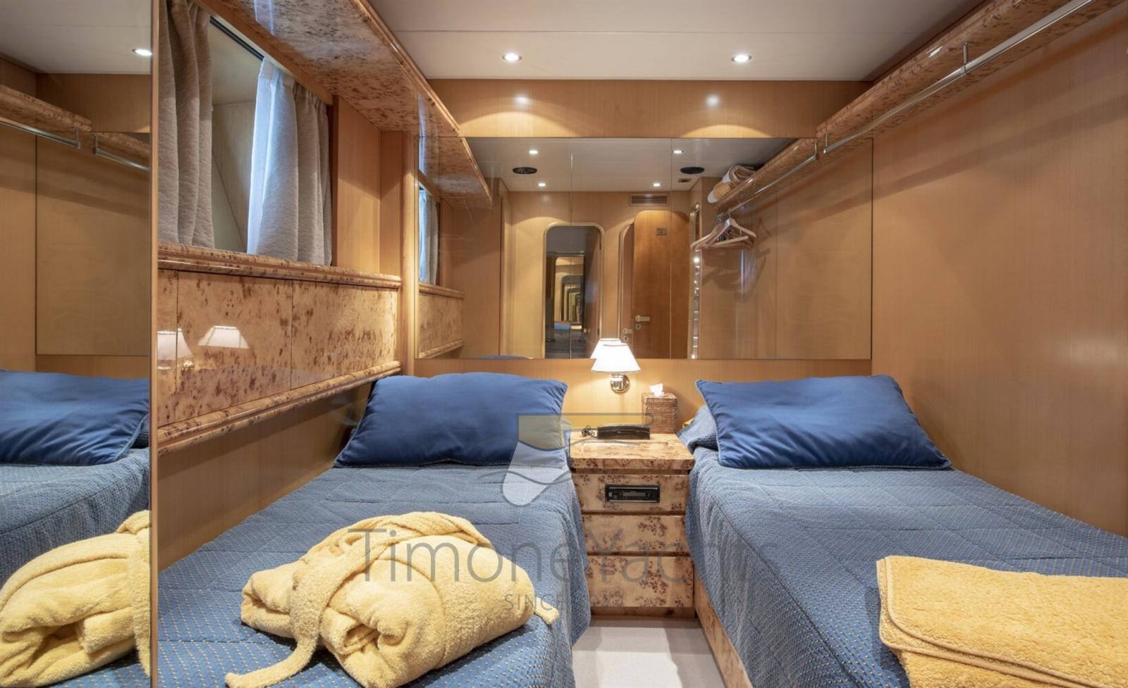 Bow thruster - Échelle de bain - Grue - Crane - Windlass - Galley - Top Bimini - Coussin soleil Bow - Coussins - Fridge - Freeza - Oven - Microwave - Machine à laver - Lave-vaisselle - Icemaker - DVD - Système de son stéréo - Système tv Sat - TV No. 6 - Pompe à eau - Bouchon d’eau à terre - Treuil d’amarrage stern - Gangway - lecteur CD - Manouvre Joystick - Chargeur de batterie - Réfrigérateur à la volée - Réservoir de retenue des déchets - Projecteur - Chauffe-eau - Plate-forme de teck - Cockpit en teck - Grue à la volée - Volet automatique - Barre humide à la volée - et bar principal dans le salon - Système d’anods électriques (anti galvanique) - Seakeeper.