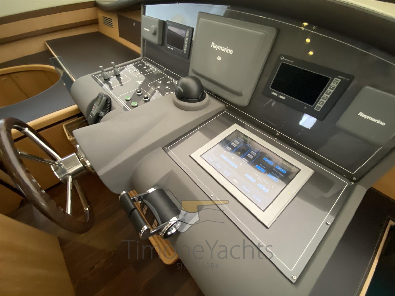 Passavant en teck, Douche de cockpit, Phare de poursuite, Flaps hydrauliques, Extincteur(s) fixe(s), Indicateurs de flaps, Lavage de chaine, Éclairage de courtoisie, Spots sous-marins, Passerelle, Porte latérale, Cockpit en teck, Prise de quai, Connexion eau sous pression à quai, table de cockpit, 2 Winch électrique arrière, Winch électrique avant.