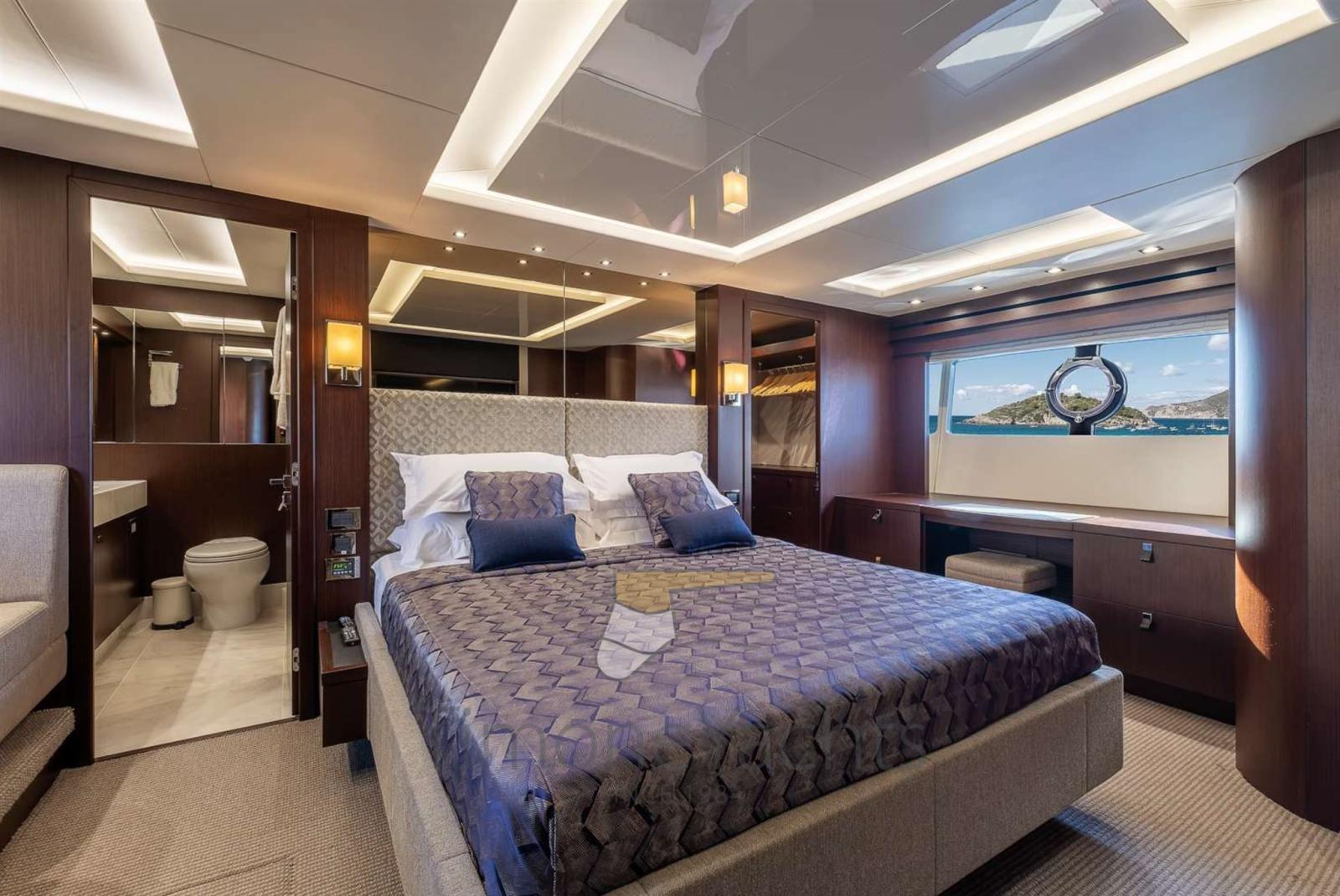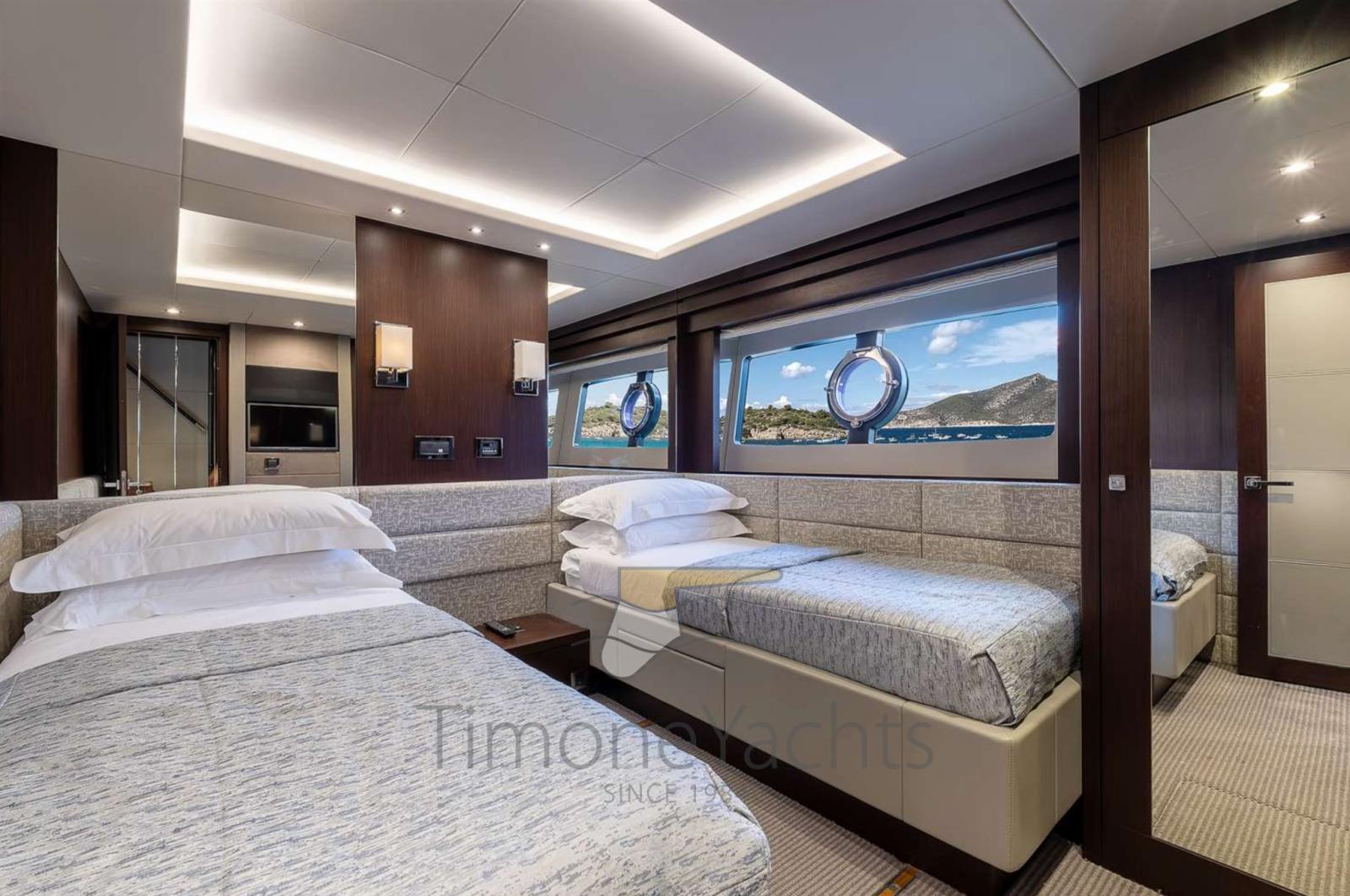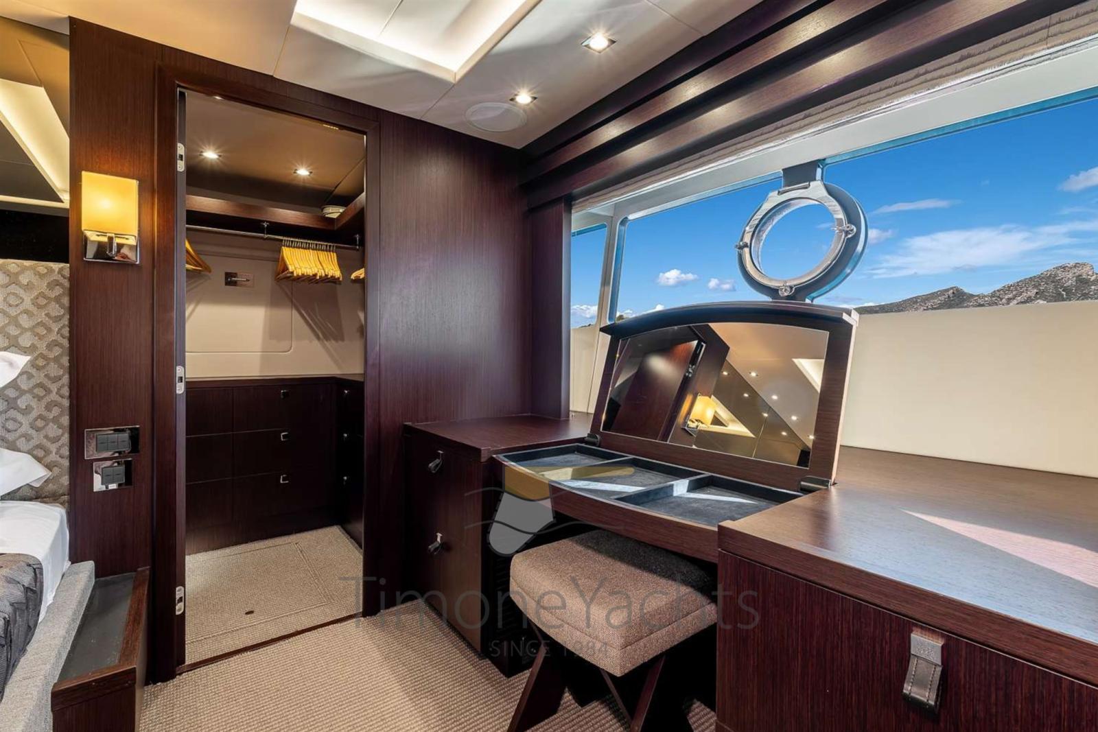 Alarme gaz, Alarme moteur, Alarme de pompe de cale, Auto Dynamic Trim Interceptor, Eau sous pression, Trim hydraulique, Passavant en teck, Douche de cockpit, Double barre à roue, Flaps électriques, Hard top, Extincteur(s) fixe(s), Indicateurs de flaps, Lavage de chaine, Passerelle, Plateforme arrière, Pont en teck, Porte latérale, Porte latérale, Cockpit en teck, Prise de quai, Connexion eau sous pression à quai, Stabilisateurs (Sleipner SPS92 Zero-speed hydraulic stabilisers), table de cockpit, Annexe (Williams 395 Sport Jet Tender), Corne, Winch électrique arrière, Winch électrique avant.