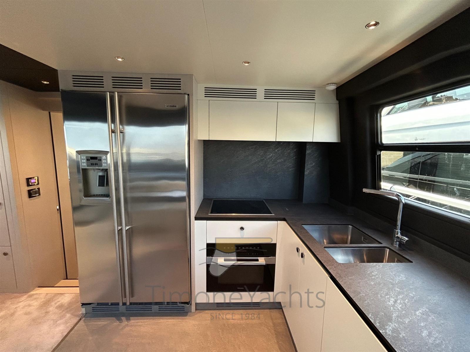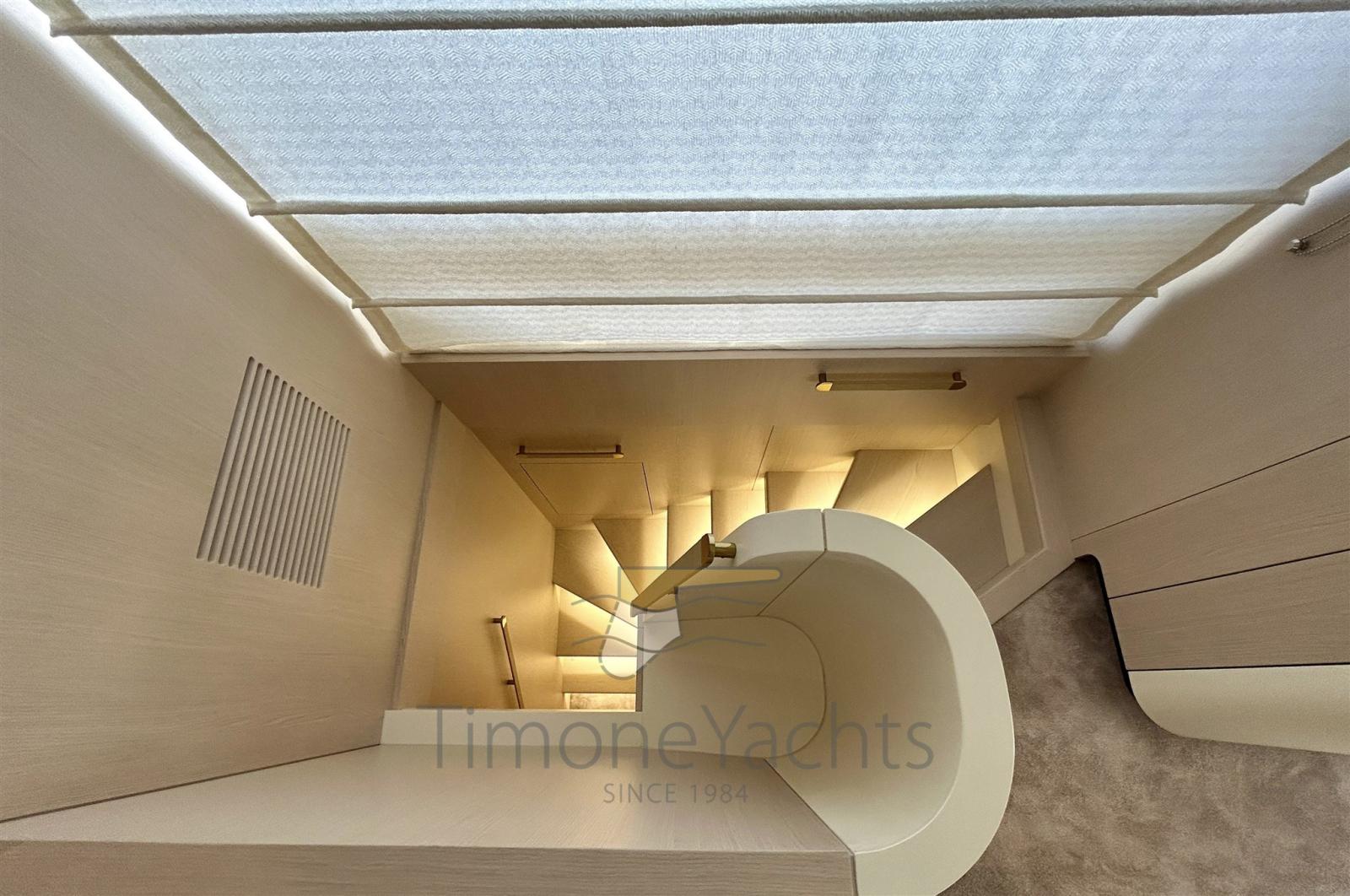 Lancé par Azimut Yachts en 2021, Time Out est un yacht à flybridge de style classique avec des spécifications avancées : stabilisateur Seakeeper NG 26, propulsé par 3 moteurs Volvo de 1000 cv chacun, dessalinisateur 180 l/h, hard top Etna Grey, peinture de coque Ischia Grey, finitions en teck dans les zones extérieures, lumières sous-marines OceanLED, pack de navigation Raymarine Gold, et bien d’autres options et solutions utiles.