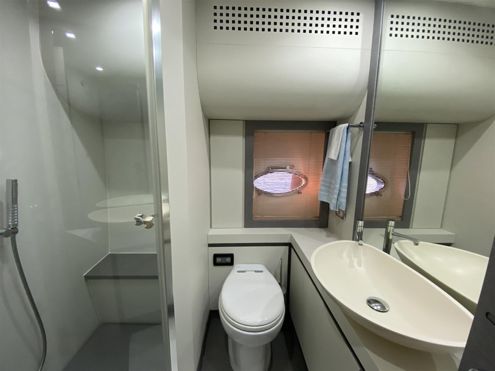 Eau sous pression, Douche de cockpit, Extincteur(s) fixe(s), Éclairage de courtoisie, Spots sous-marins, Passerelle, Cockpit en teck, Prise de quai, table de cockpit.