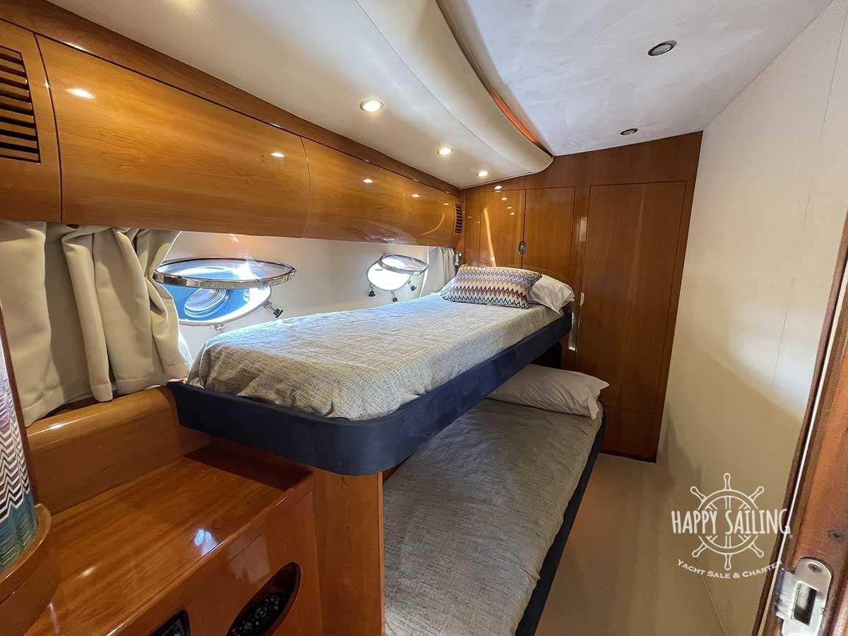 Alarme moteur, Eau sous pression, Douche de cockpit, Flaps hydrauliques, 2 Garage à annexe, Hard top, Éclairage de courtoisie, Spots sous-marins, Passerelle (a scomparsa), Plateforme arrière, Cockpit en teck, Prise de quai, table de cockpit, Annexe.