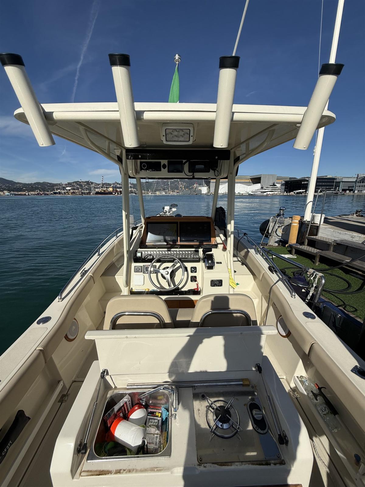 Alternateur, Eau sous pression, Câble d’alimentation à quai, Douche de cockpit, Flaps électriques, Moniteur de batterie, Défenses, Pompe de cale automatique, Pompe à Eau de Mer, Prise de quai, Echelle de bain, table de cockpit, Corne, T-Top.