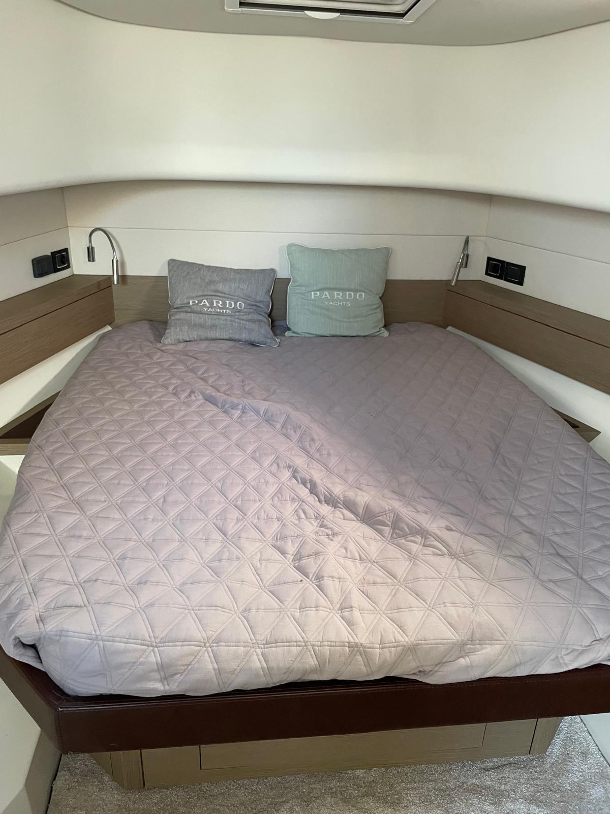 Ce magnifique Pardo 43 de 2018 se distingue par son entretien rigoureux : avec seulement 550 heures de navigation, il a bénéficié d'un hivernage systématique sous hangar, garantissant la préservation de sa coque blanche et de ses équipements. Il est propulsé par deux puissants moteurs VOLVO IPS 600 (2 x D6 435CV), offrant performance, manœuvrabilité exceptionnelle (grâce au Joystick) et faible consommation.