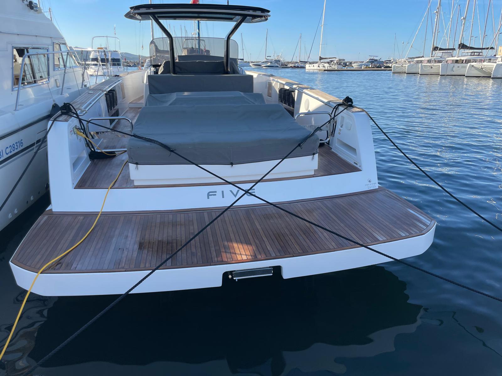 Détente : Grand bain de soleil arrière dissimulant le garage à tender. Deux réfrigérateurs supplémentaires sous les banquettes arrière.