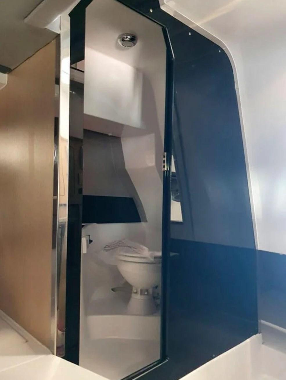Eau sous pression, Batteries (3), Douche de cockpit, Lavabo dans le cockpit, Éclairage de courtoisie, Pompe de cale automatique, Prise de quai, Guindeau électrique, Echelle de bain, T-Top.