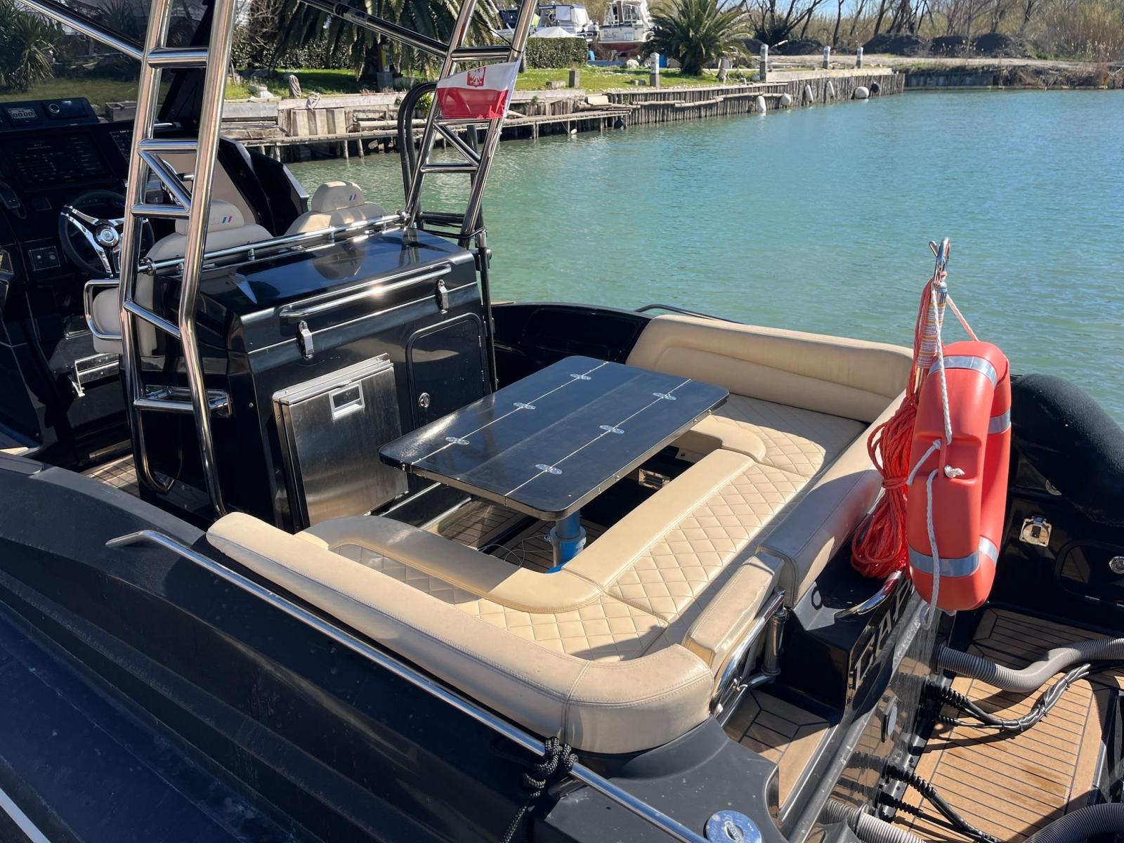 Eau sous pression, Douche de cockpit, Pompe de cale automatique, Prise de quai, Echelle de bain, table de cockpit (Elettrico), T-Top.