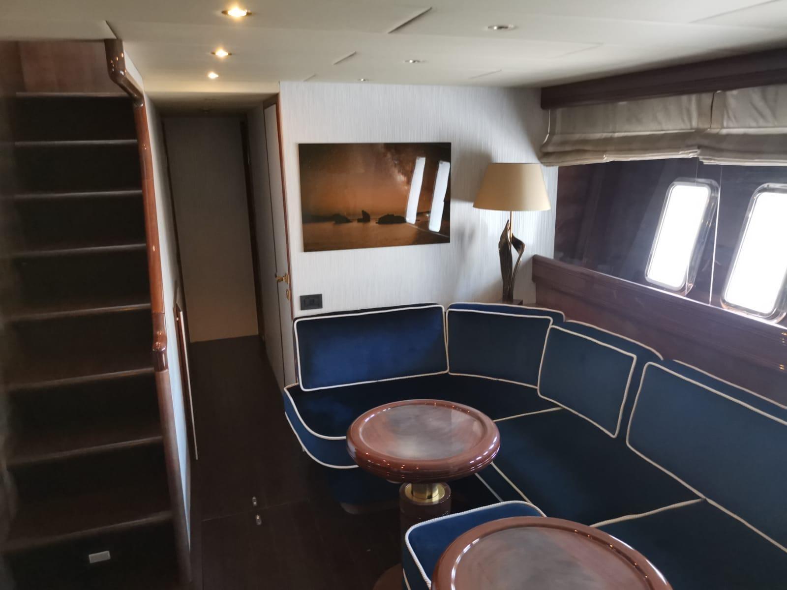 Eau Chaude, Air conditionné (ricaricata 2024), Ballon d'eau chaude, Air Conditionné, Dessalinisateur (revisione 2024), Cuve à eaux noires, Jauge de Réservoir d’Eau, Indicateur de pression d’huile, Indicateur de température moteur, Plancher intérieur en bois, Prises interieures 12v, Prises interieures 220v, Réservoir d'eau noire, Caméra vidéo (poppa, garage e sala macchine con monitor), 4 Toilettes électriques.