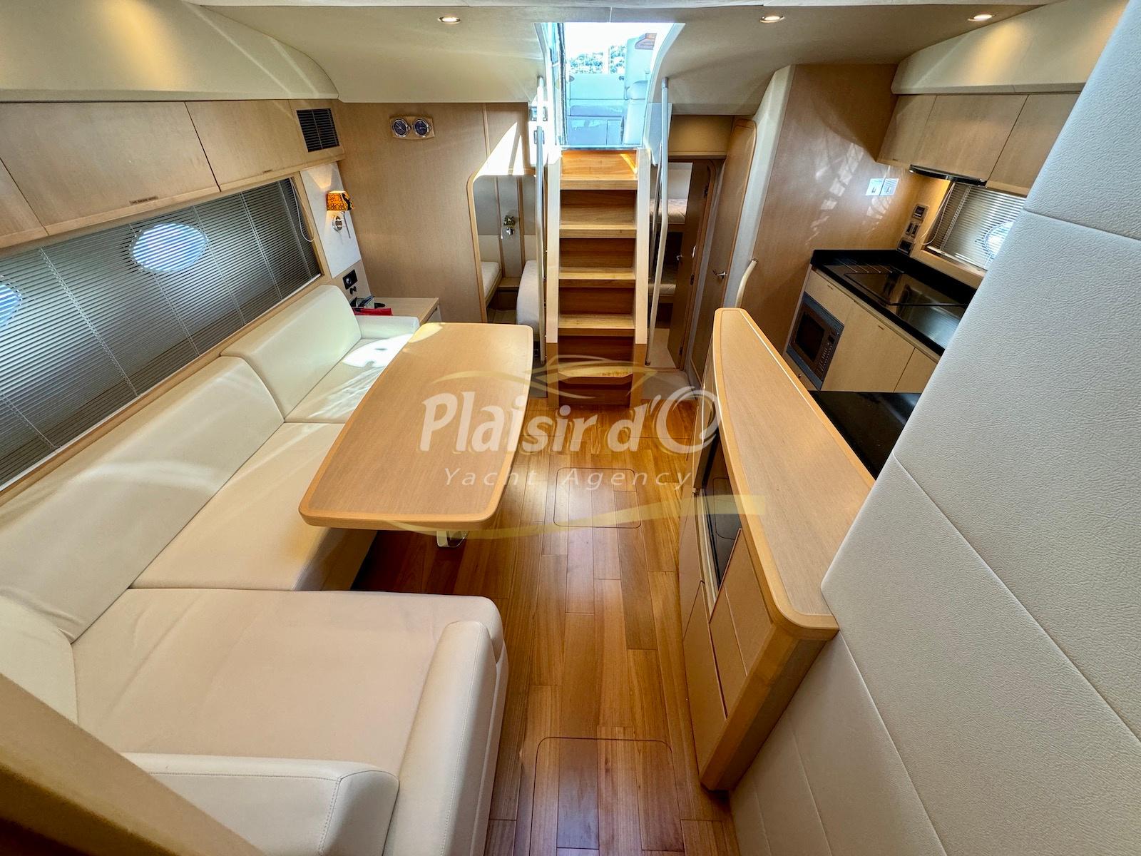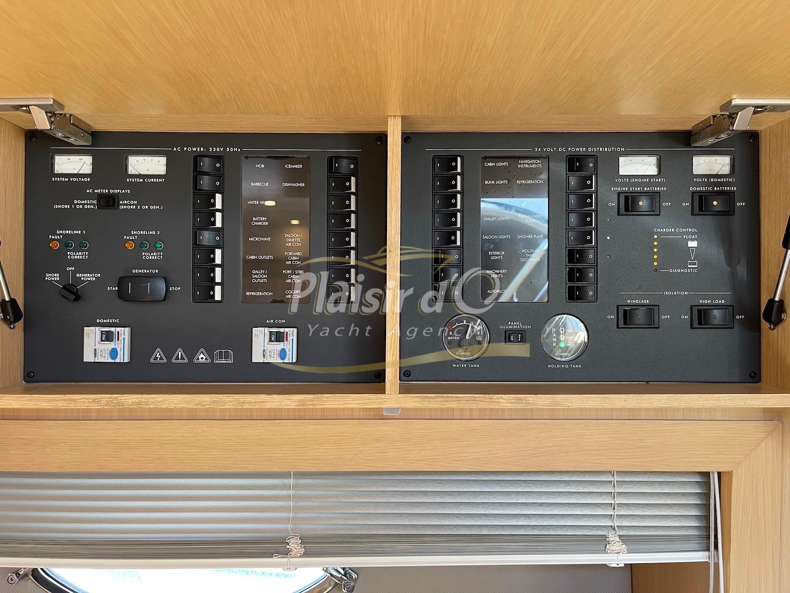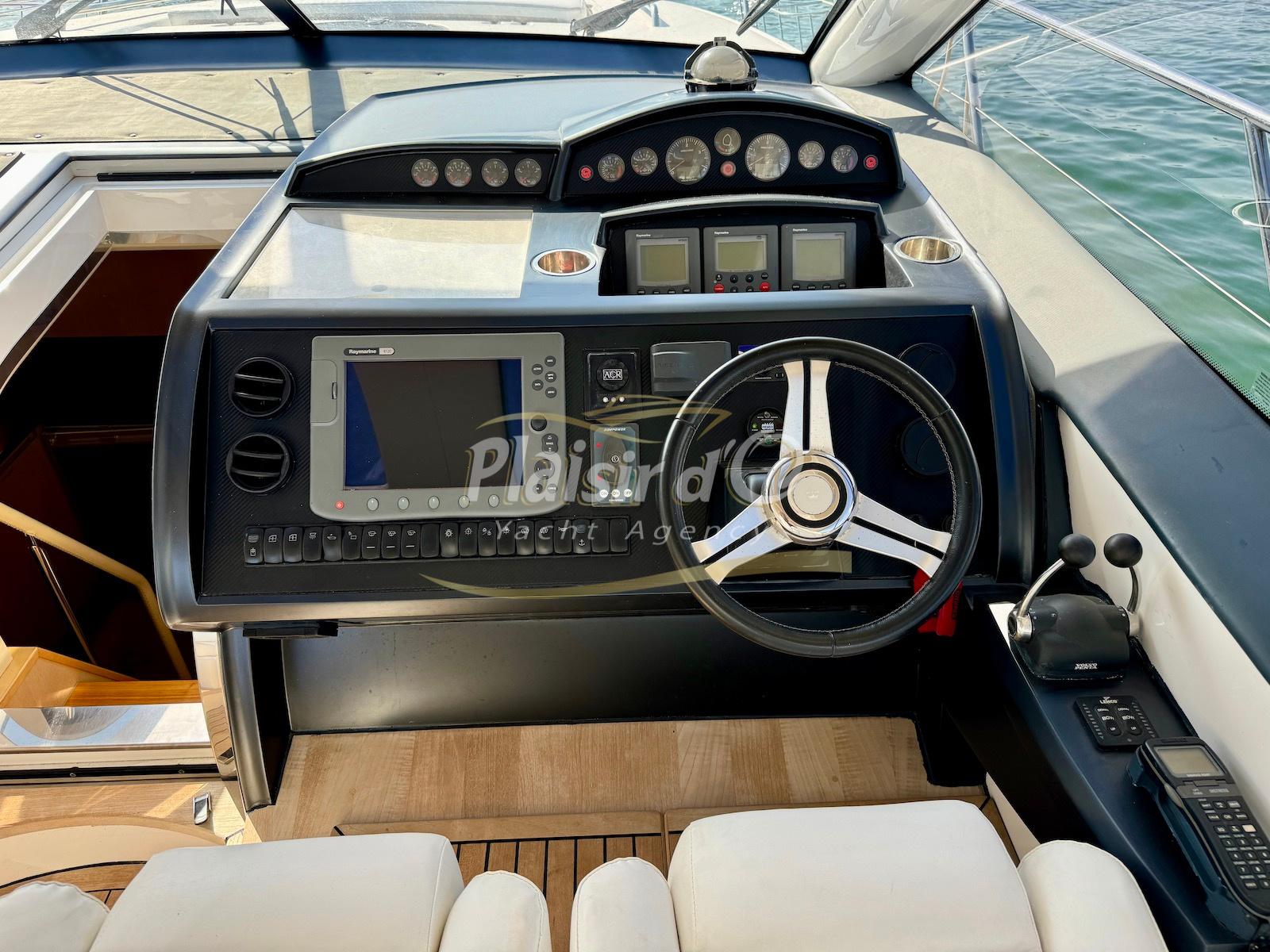 TOUTES OPTIONS : Grosse motorisation D12-800, Yacht controller, propulseur de poupe / proue, GPS traceur/radar, guindeau électrique, générateur, convertisseur, feux sous marin, icemaker, climatisation, passerelle hydraulique, garage à annexe avec treuil Electrique, sellerie complete NEUVE, parquet intérieur sur mesure NEUF...
