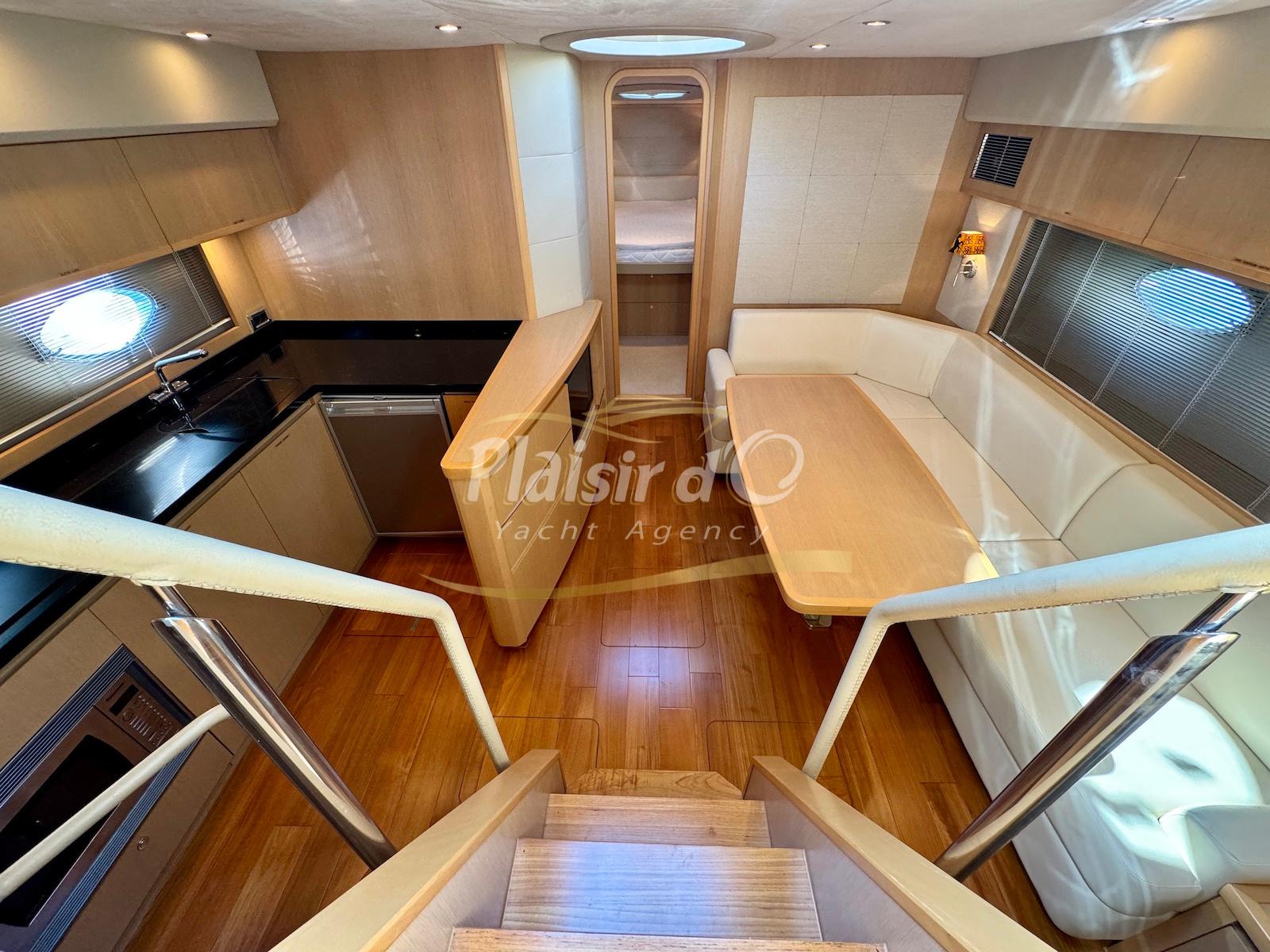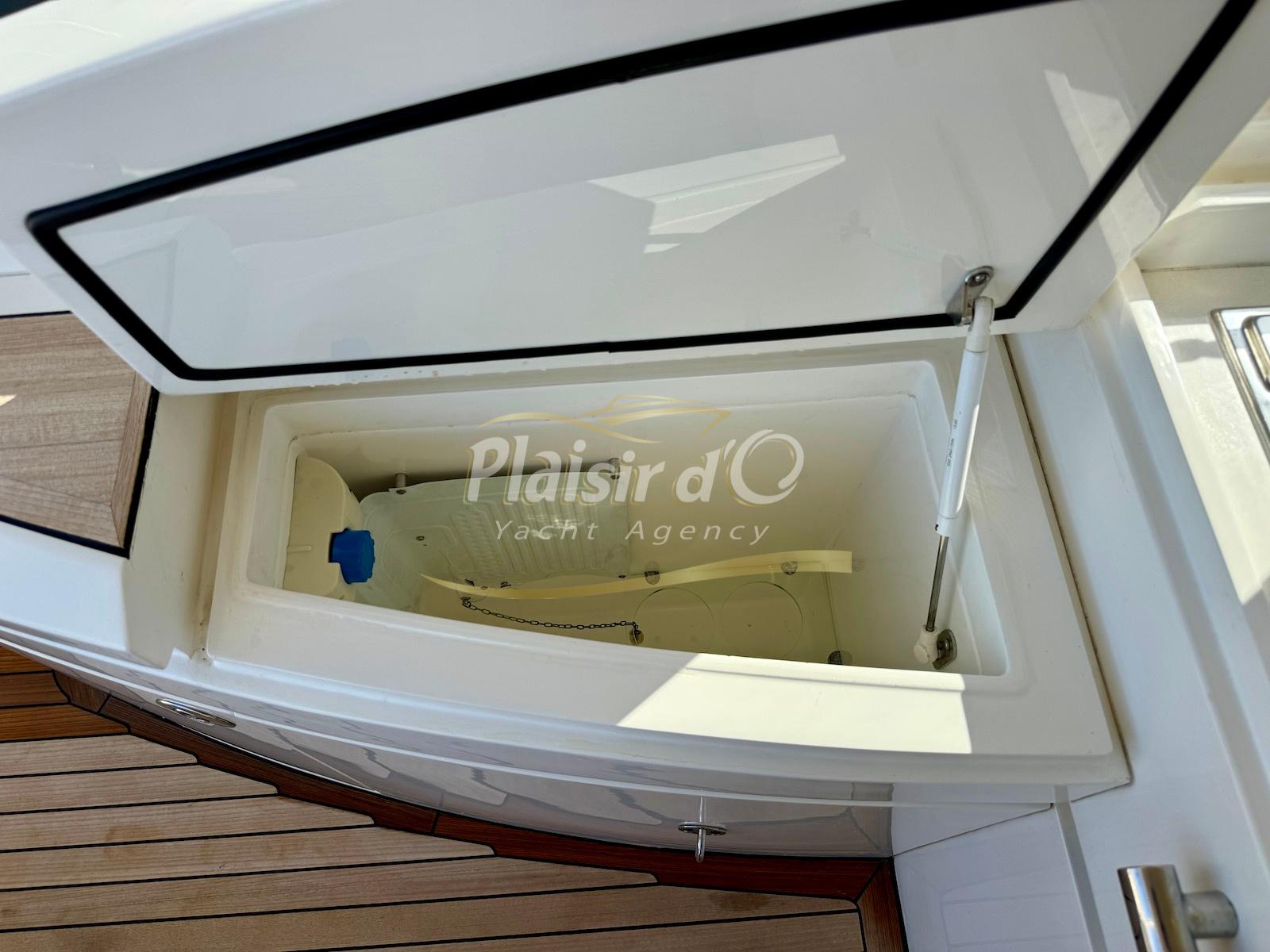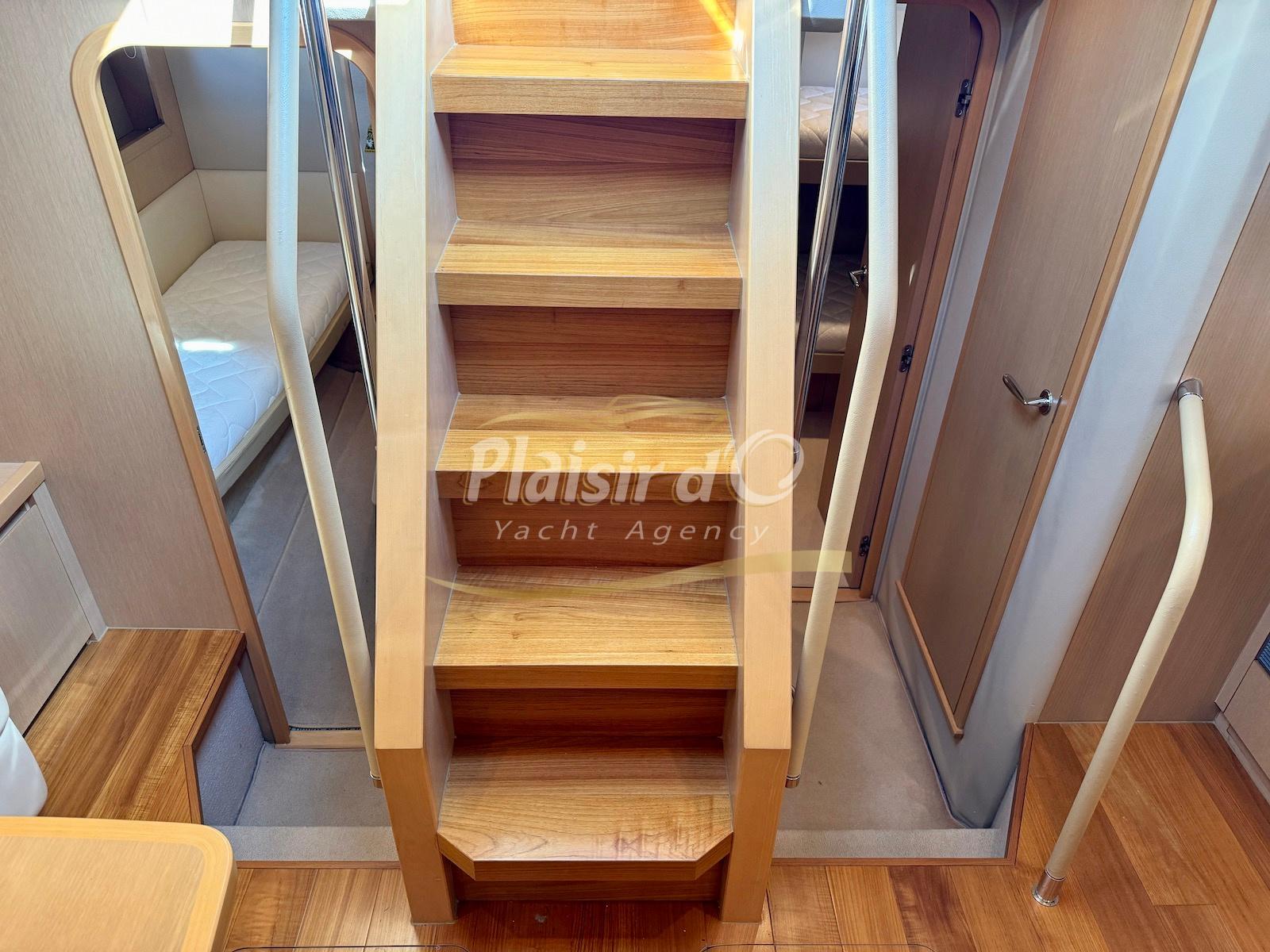 TOUTES OPTIONS : Grosse motorisation D12-800, Yacht controller, propulseur de poupe / proue, GPS traceur/radar, guindeau électrique, générateur, convertisseur, feux sous marin, icemaker, climatisation, passerelle hydraulique, garage à annexe avec treuil Electrique, sellerie complete NEUVE, parquet intérieur sur mesure NEUF...