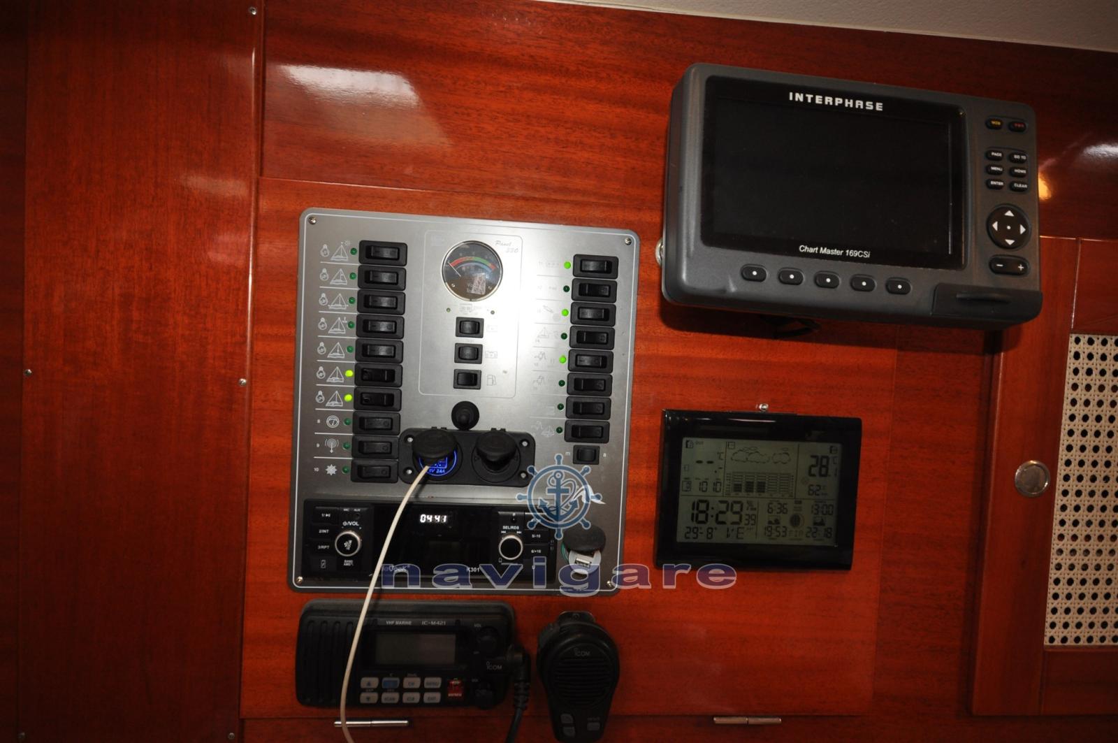 Alarme moteur, Eau sous pression, 3 Batteries (x110 ah DEL 2023), Passavant en teck, Douche de cockpit, Passerelle, Pompe de cale automatique, Pompe de cale manuelle, Pont en teck, Cockpit en teck, Prise de quai, Guindeau électrique, Gréement monotoron, Echelle de bain.