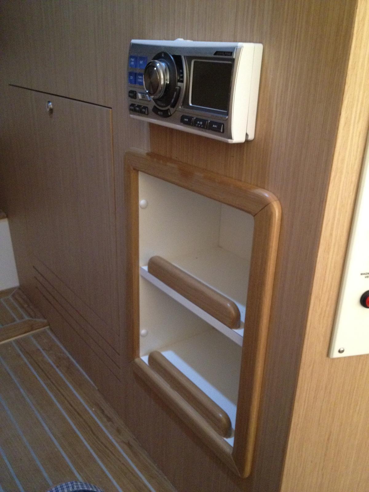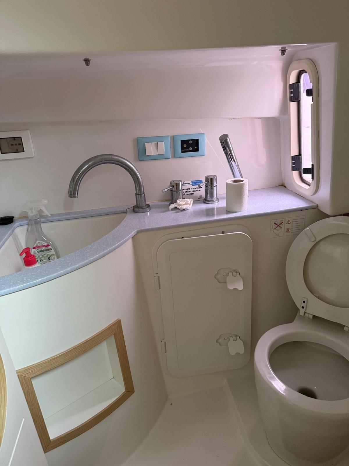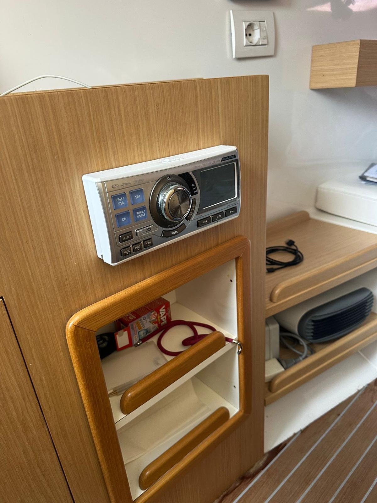 Alarme moteur, Ouverture du compartiment moteur électrique, Eau sous pression, Douche de cockpit, Extincteur(s) fixe(s), Éclairage de courtoisie, Plateforme arrière, Pompe de cale automatique, Cockpit en teck, Prise de quai, Guindeau électrique, Echelle de bain, Table, table de cockpit, Corne.