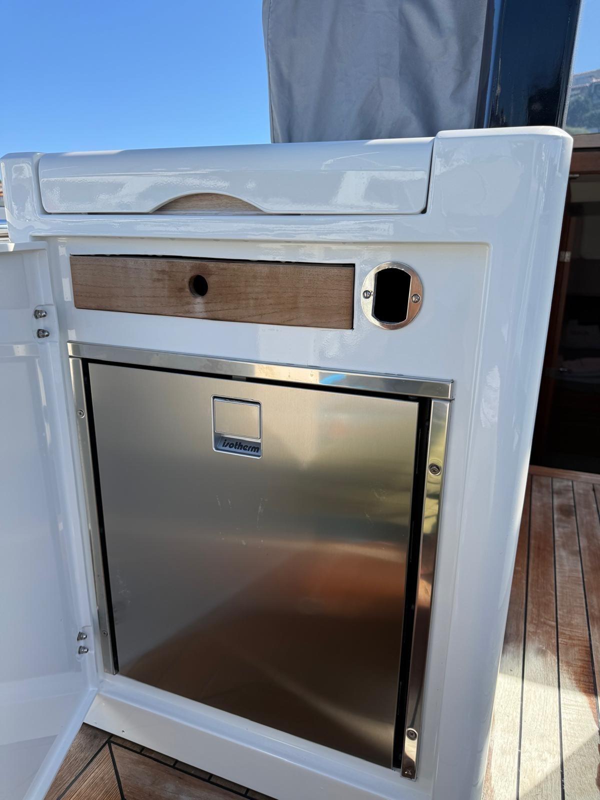 Alarme moteur, Alarme de pompe de cale, Ancre (10kg + 50m SS chain with hydraulic arm system), Eau sous pression, Batteries (Nuove 2024), 6 Taquets pliants, Passavant en teck, Chargeur de batterie (Mastervolt 2024), Câble d’alimentation à quai, Douche de cockpit, Flaps électriques (Volvo trim tabs), Extincteur(s) fixe(s) (firebuoy), Indicateurs de flaps, Lavabo dans le cockpit, Éclairage de courtoisie, Plateforme arrière (extended like FJORD 42), 2 Pompe de cale automatique, Cockpit en teck, Prise de quai, Guindeau électrique, Echelle de bain, table de cockpit, 2 Filières avec sortie latèrale, Corne, T-Top.