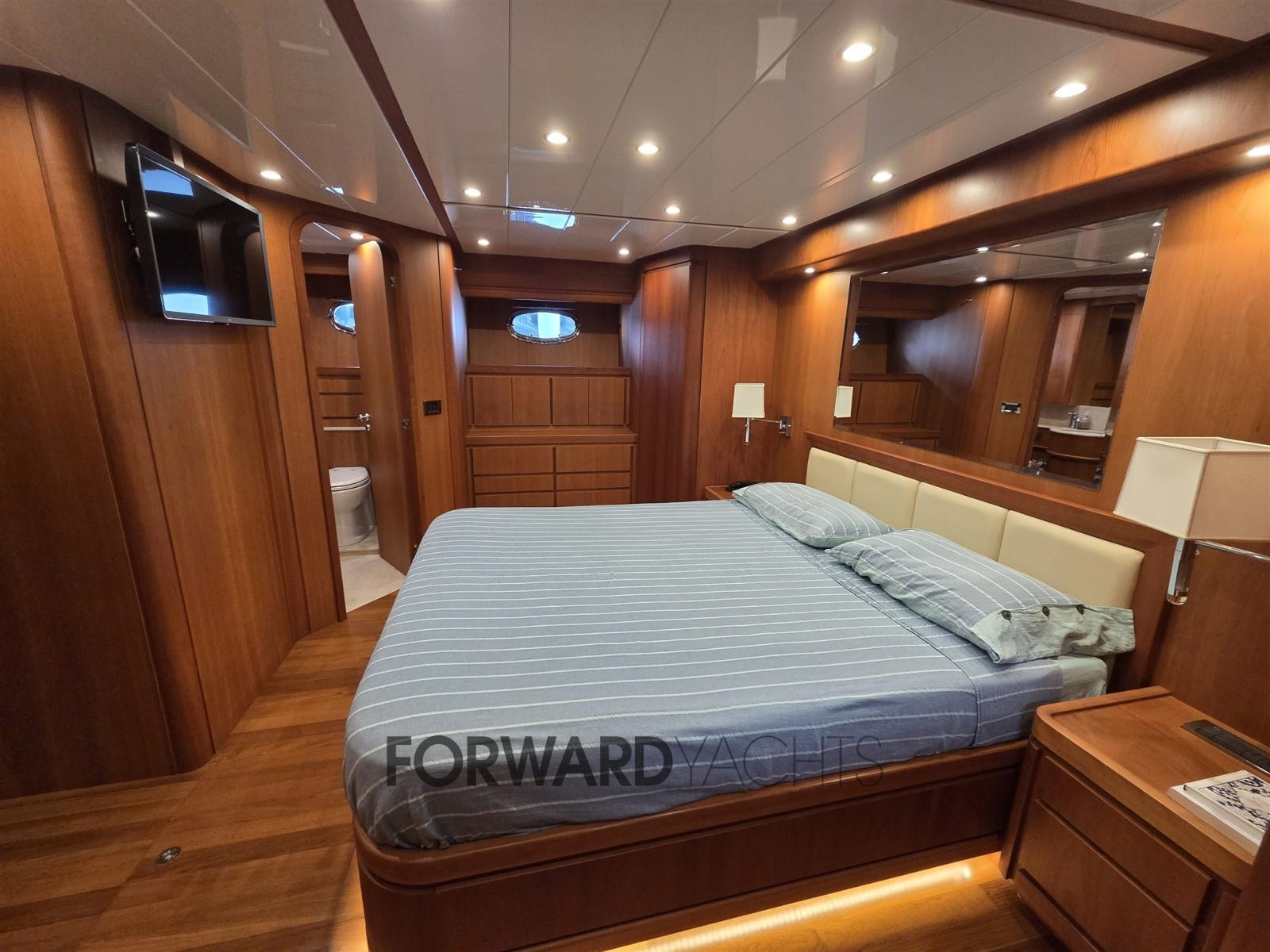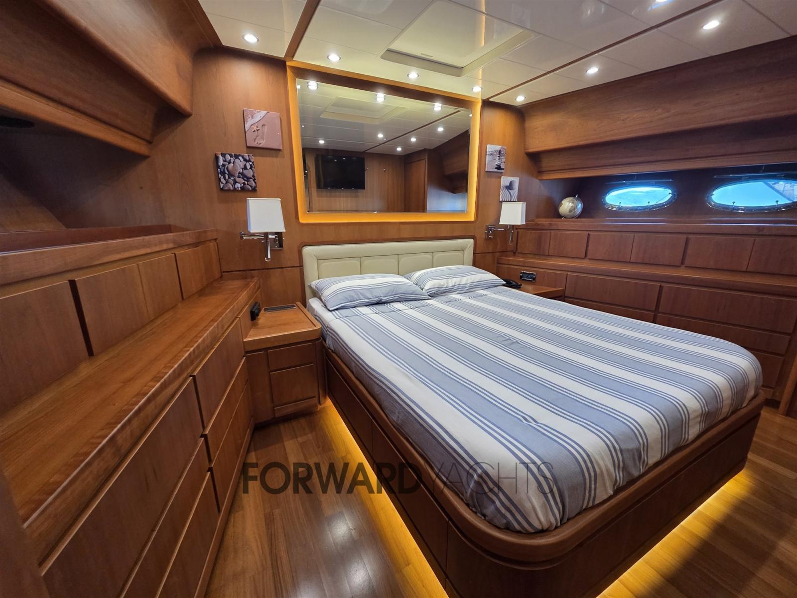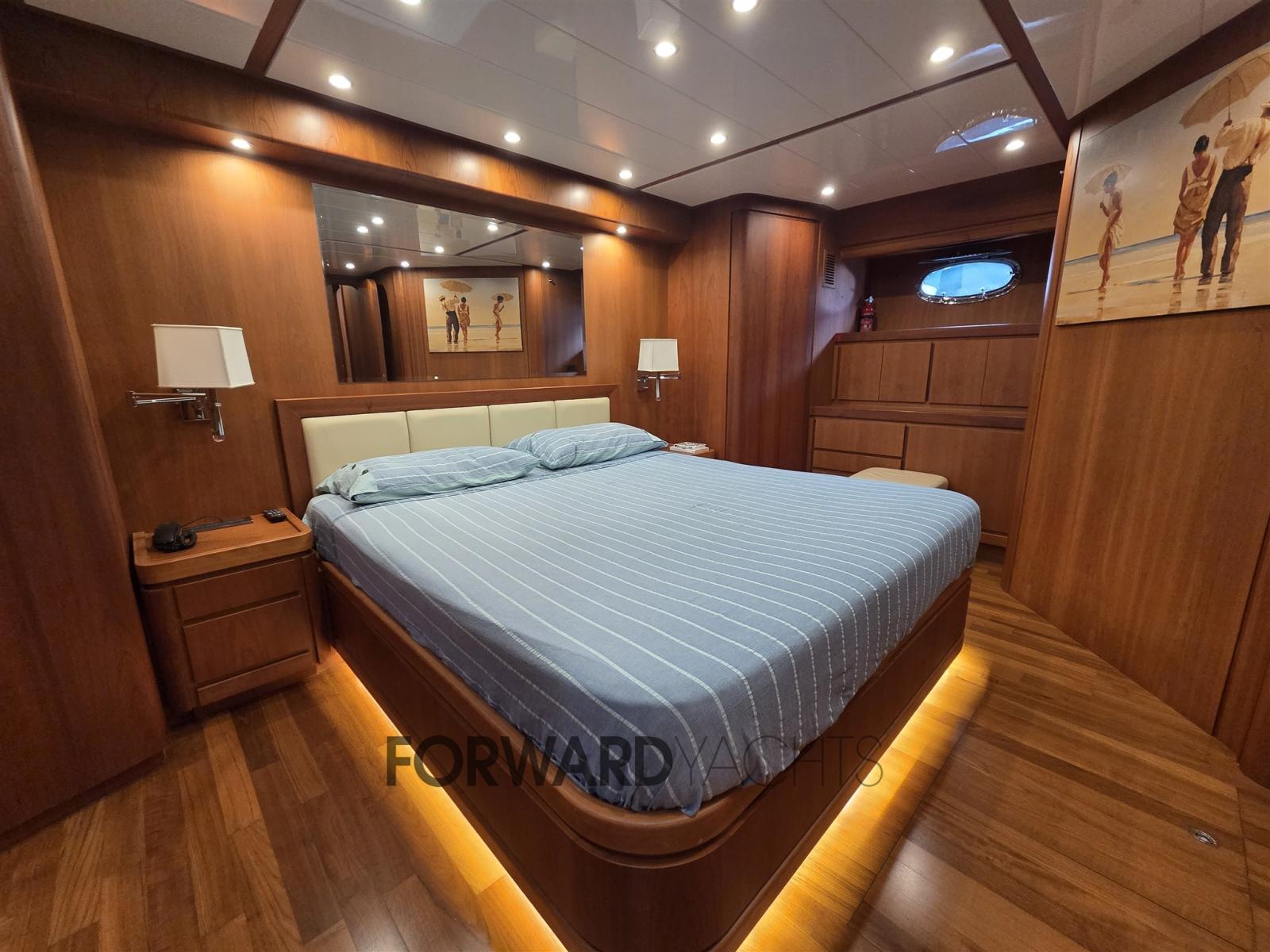 Nombreux accessoires dont : propulseur d’étrave en teck, pont et flybridge, passerelle hydraulique, 2 groupes électrogènes, machine à glaçons, réfrigérateurs, dessalinisateur, pont arrière en teck, climatisation.