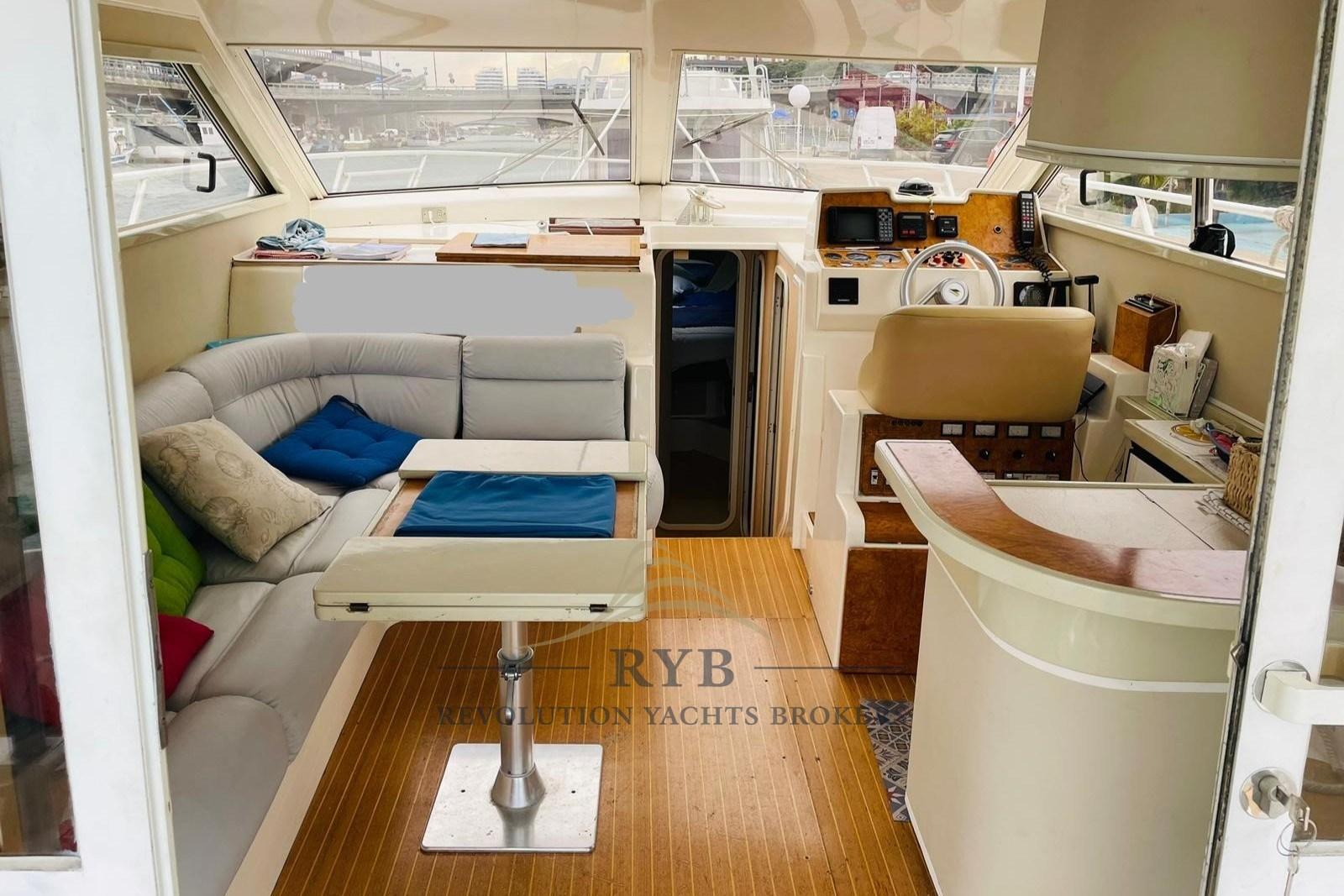 Eau sous pression (2024), Chargeur de batterie (2021), Couleur spéciale, Douche de cockpit, Double barre à roue, Phare de poursuite, Flaps hydrauliques, Éclairage de courtoisie, Passerelle, Plateforme arrière, Porte latérale, Cockpit en teck, Onduleur, Rollbar, Guindeau électrique, Echelle de bain, table de cockpit.