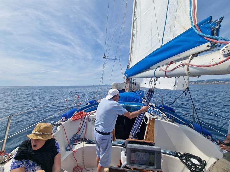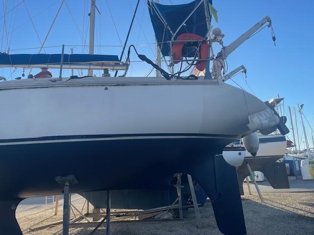 GIN FIZZ est un plan Michel Joubert, volumineux, rapide et robuste, cockpit central confortable et sécurisant pour de longues navigations. C’est un voilier de voyage par excellence, un vrai 4×4 des mers. Le chantier Gibert Marine avait pris de la marge quant à l’échantillonnage du gréement et de l’accastillage. Réfection d’une jupe arrière avec revêtement teck et marche pied qui améliore ses performances et le confort à l’eau. 2 cabines doubles pour 9 couchages et homologué pour 10 personnes c’est une seconde main très bien équipé. Présence osmose sur la coque .. Visible à Port Maritima – Martigues.