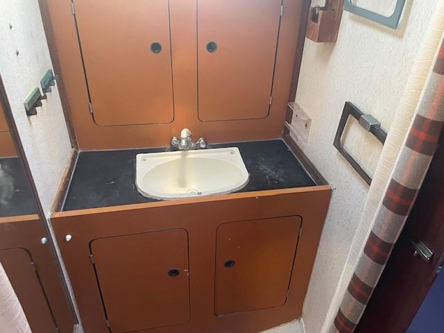 Un carré très vaste pouvant accueillir 5 couchages. La partie WC et la cabine double sont aménagés à l’avant .La cabine arrière est totalement autonome et accessible par une deuxième descente.