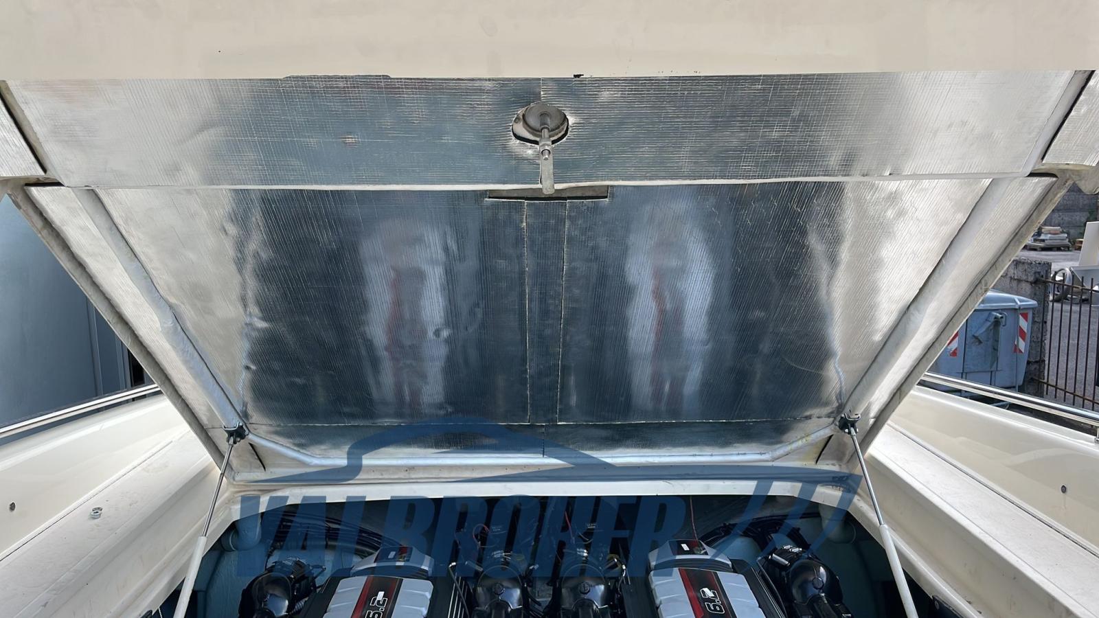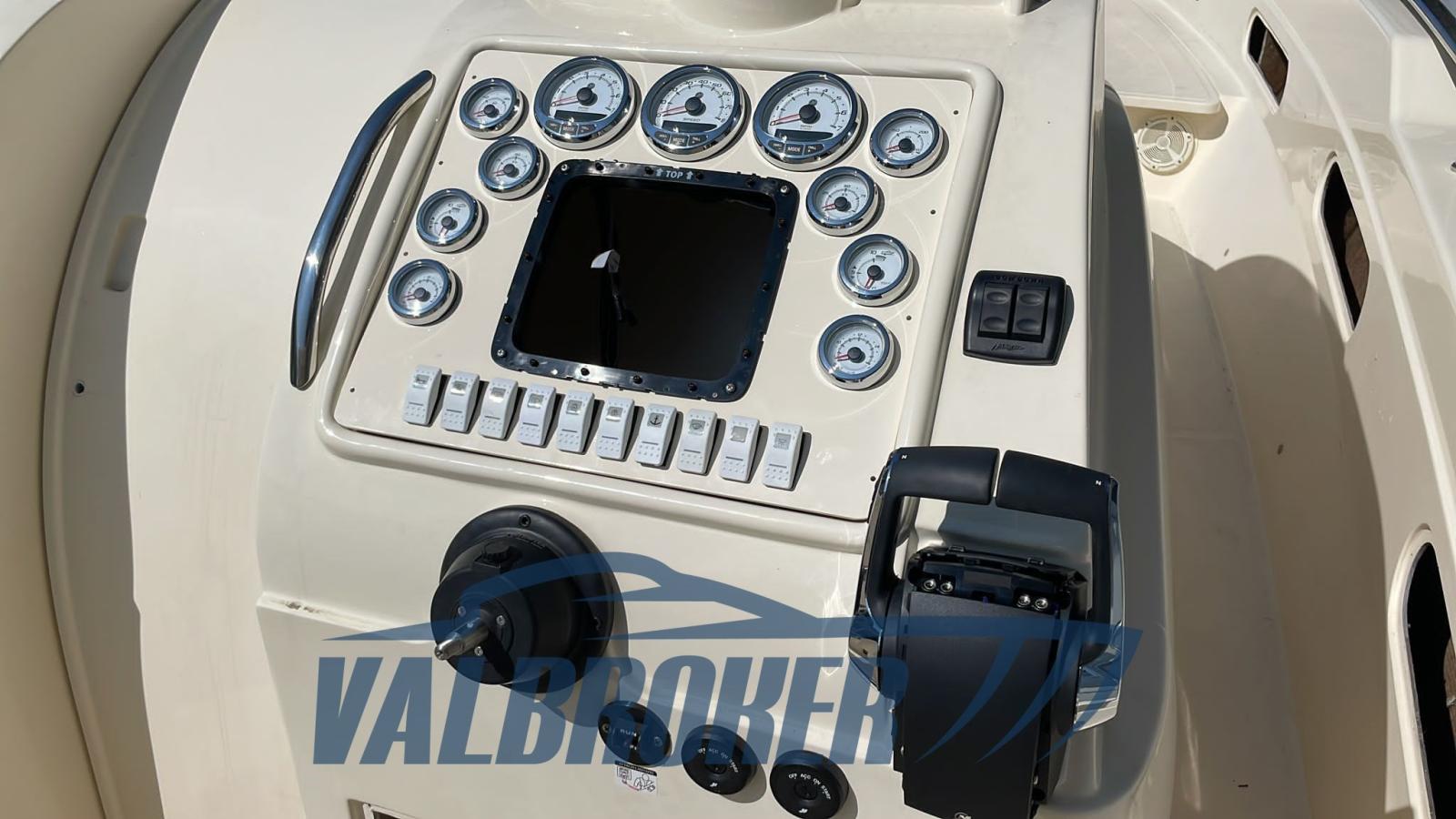 Walkaround de 1998 mais entièrement réaménagé en 2023 : nouvelle timonerie hydraulique Ultraflex, sellerie neuve, système électrique, sonorisation Fusion (factures disponibles). Unique, inaccessible. Très performant. Nouveaux moteurs 2x350 Mercruiser MCM 6.2 L avec garantie 2023. Il atteint un maximum de 50 nœuds. Tiffany color.BATEAU NON PLAQUÉ.