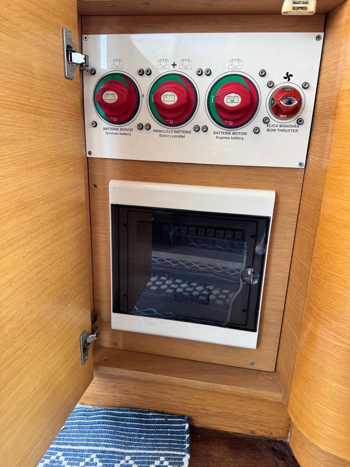 Eau sous pression, Flaps hydrauliques (N°20), Passerelle, Plateforme arrière, Pompe de cale automatique, Onduleur, Guindeau électrique, Echelle de bain.