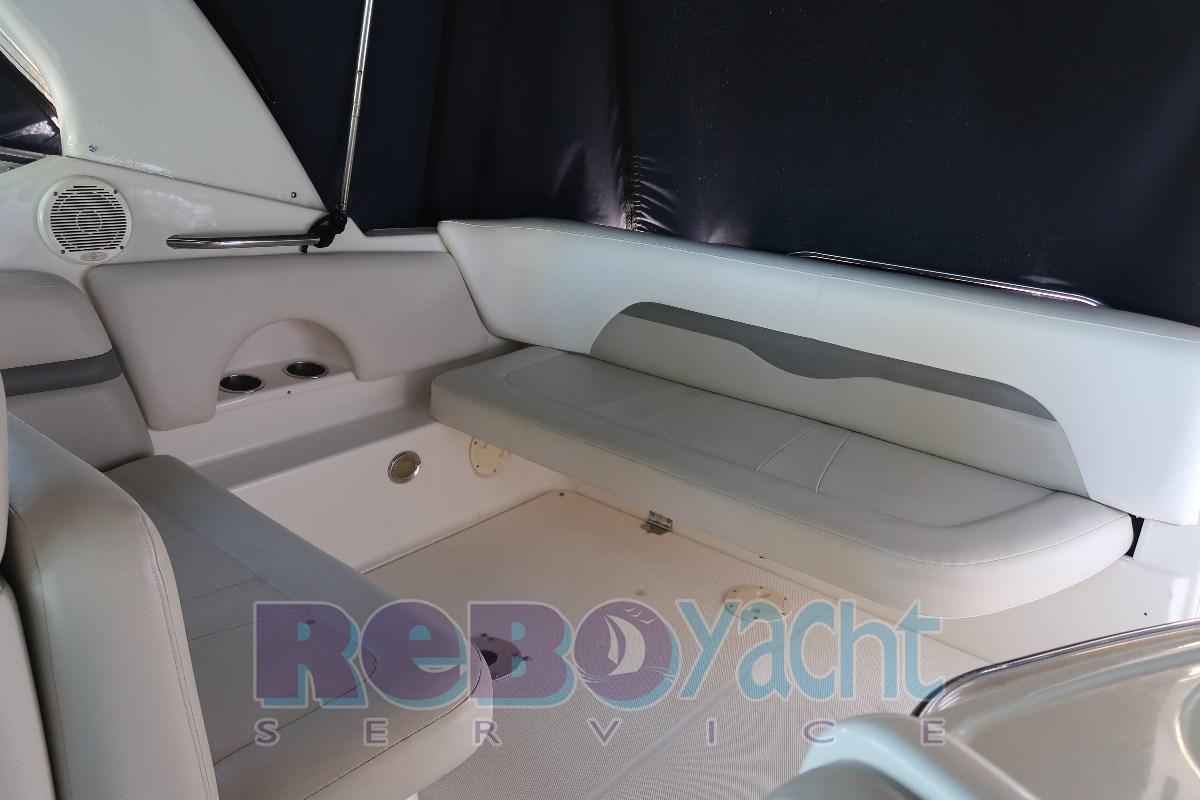 Le Chaparral Signature 280 est unique par sa taille. L’aménagement intérieur permet une excellente habitabilité. 2x Volvo Penta 4.3 V6 de 225 CV. Propriétaire précis, entretien régulier. Toujours mettre hors de l’eau en hiver. Coussins de bronzage extra larges à l’avant, passage central pratique pour aller à la proue. Dinette fixe à l’avant