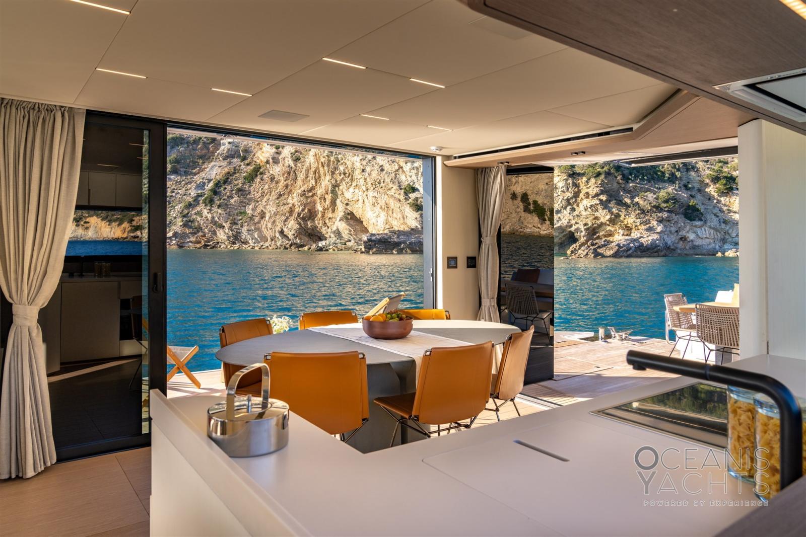 BBQ/ Grill, Ballon d'eau chaude, Coffre-fort, Air Conditionné, Connexion à internet, Gradateur de lumière, Dessalinisateur (200 lt/h), Cuve à eaux noires, Indicateur du réservoir de carburant, Jauge de Réservoir d’Eaux Usées, Plancher intérieur en bois, Prises interieures 12v, Prises interieures 220v, Réservoir d'eau noire, 4 Toilettes électriques.