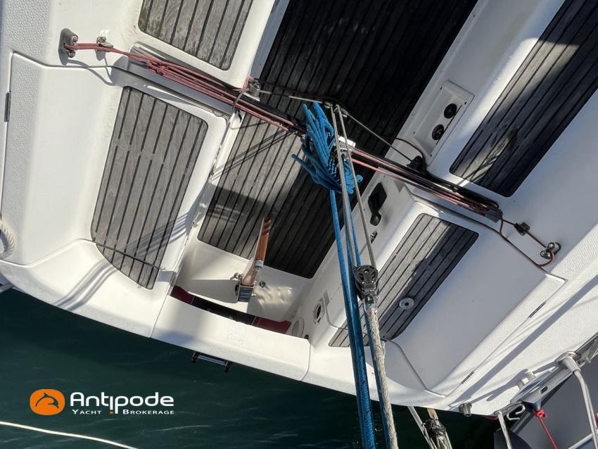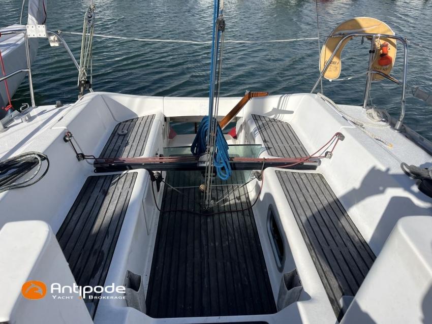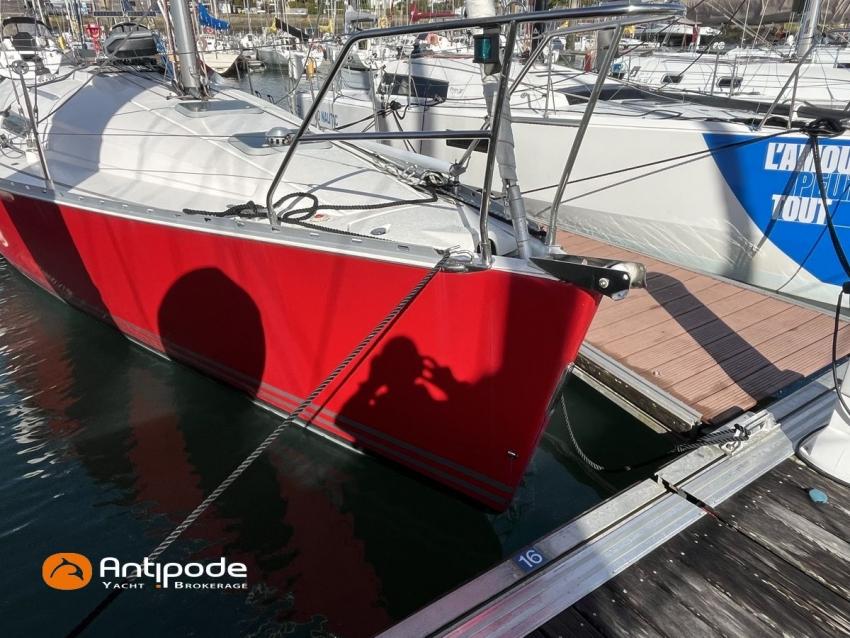 SUN FAST 32, 1999 (historique connu, 2 propriétaires), Yanmar 2GM20 18 cv (1393 h), Version d'aménagement intérieur 1 cabine avant, 1 cabine arrière, 1 cabinet de toilette et douche, Selleries carré tissu - 2023, 2 winchs d'écoutes de génois dans le cockpit - Harken 40, 2 winchs sur roof pour réglages et manoeuvres - Harken 32, Fond de cockpit latté teck, Assises de cockpit lattées teck, Grand-voile triradiale, Lazy-bag de grand voile, Enrouleur de génois avec tambour sous le pont, Génois sur enrouleur triradial, Gréement de spi classique, 2 spinnakers, Pilote automatique in board Raymarine ST 6002 avec vérin Lecomble & Schmidt , Centrale de navigation Raymarine ST 60 (vent, vitesse, sondeur), 3 répétiteurs Raymarine ST 60 cockpit, GPS / lecteur de carte à la table à carte, Cartographie électronique, VHF / AIS à la table à carte - NAVICOM RT 650 DSC ASN, Unité réfrigérante 12 V ouverture par le dessus - 2023, Gazinière 2 feux + four - 2024, Prise de quai 220 V + chargeur de batteries, Batterie moteur - 70 amp, Batteries service - 2 X 70 amp, Radeau de survie (prochaine rev. 2026), Autres équipements de sécurité non fournis, Mouillage principal, Visible Bretagne. Pour plus d'informations ou pour fixer un rendez-vous de visite, contact : Jérôme Le Joubioux 06 07 45 71 73 - [email protected]