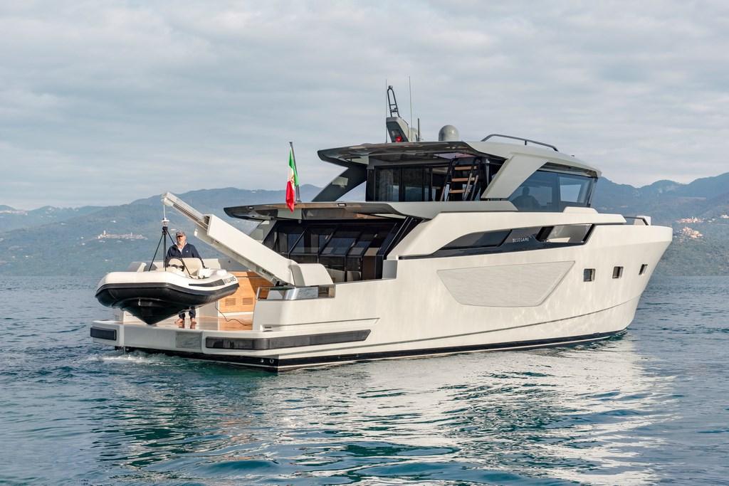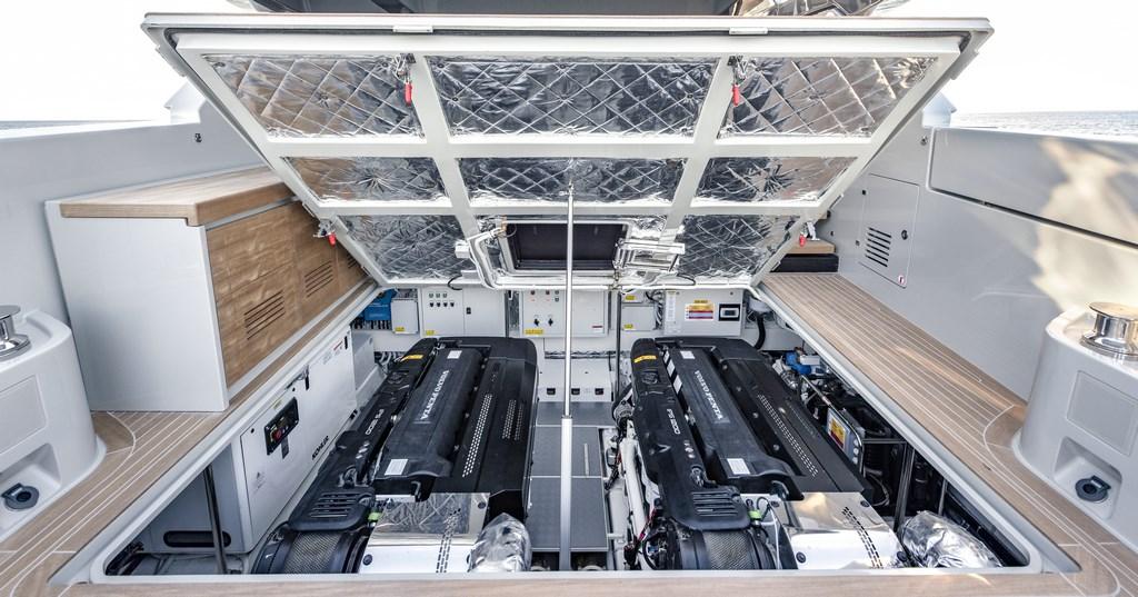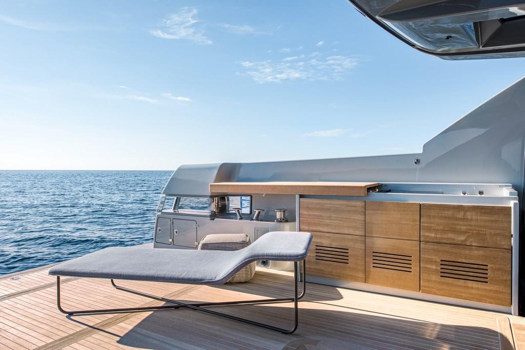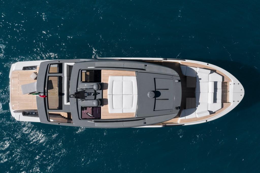 Alarme moteur, Alarme de pompe de cale, Ouverture du compartiment moteur électrique, Auto Dynamic Trim Interceptor, Eau sous pression, Trim hydraulique, 2 Taquets pliants, Système de vidange, Passavant en teck, Douche de cockpit, Phares fixes arrière, Phare de poursuite, Bossoirs, Hard top, Extincteur(s) fixe(s), Lavage de chaine, Lavabo dans le cockpit, Éclairage de courtoisie, Spots sous-marins, Passerelle (Pantograph), Plateforme arrière, 3 Porte latérale, Porte latérale, Cockpit en teck, Prise de quai, Guindeau électrique, Echelle de bain (Pantograph), Stabilisateurs (gyro), table de cockpit (Private terrace in upper deck), Corne, 2 Winch électrique arrière, Winch électrique avant.