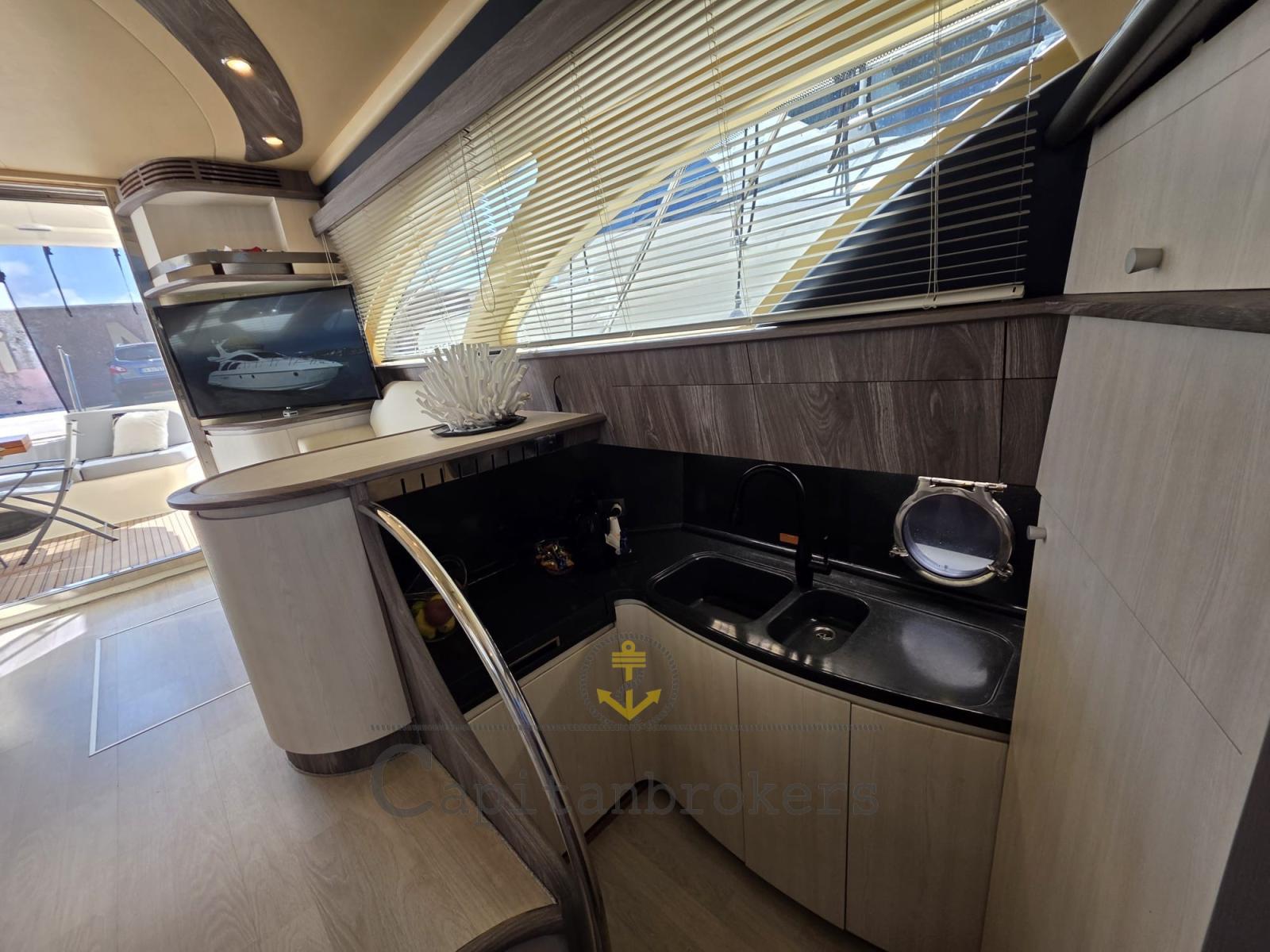 Alarme moteur, Alarme de pompe de cale, Eau sous pression, 8 Batteries, Douche de cockpit, Double barre à roue, Extincteur(s) fixe(s), Indicateurs de flaps, Lavabo dans le cockpit, Éclairage de courtoisie, Spots sous-marins, Passerelle, Plateforme arrière (in teak), Pompe de cale automatique, Pompe de cale manuelle, Porte latérale, Cockpit en teck, Prise de quai, Connexion eau sous pression à quai, Guindeau électrique, Echelle de bain, table de cockpit (in teak), Corne.