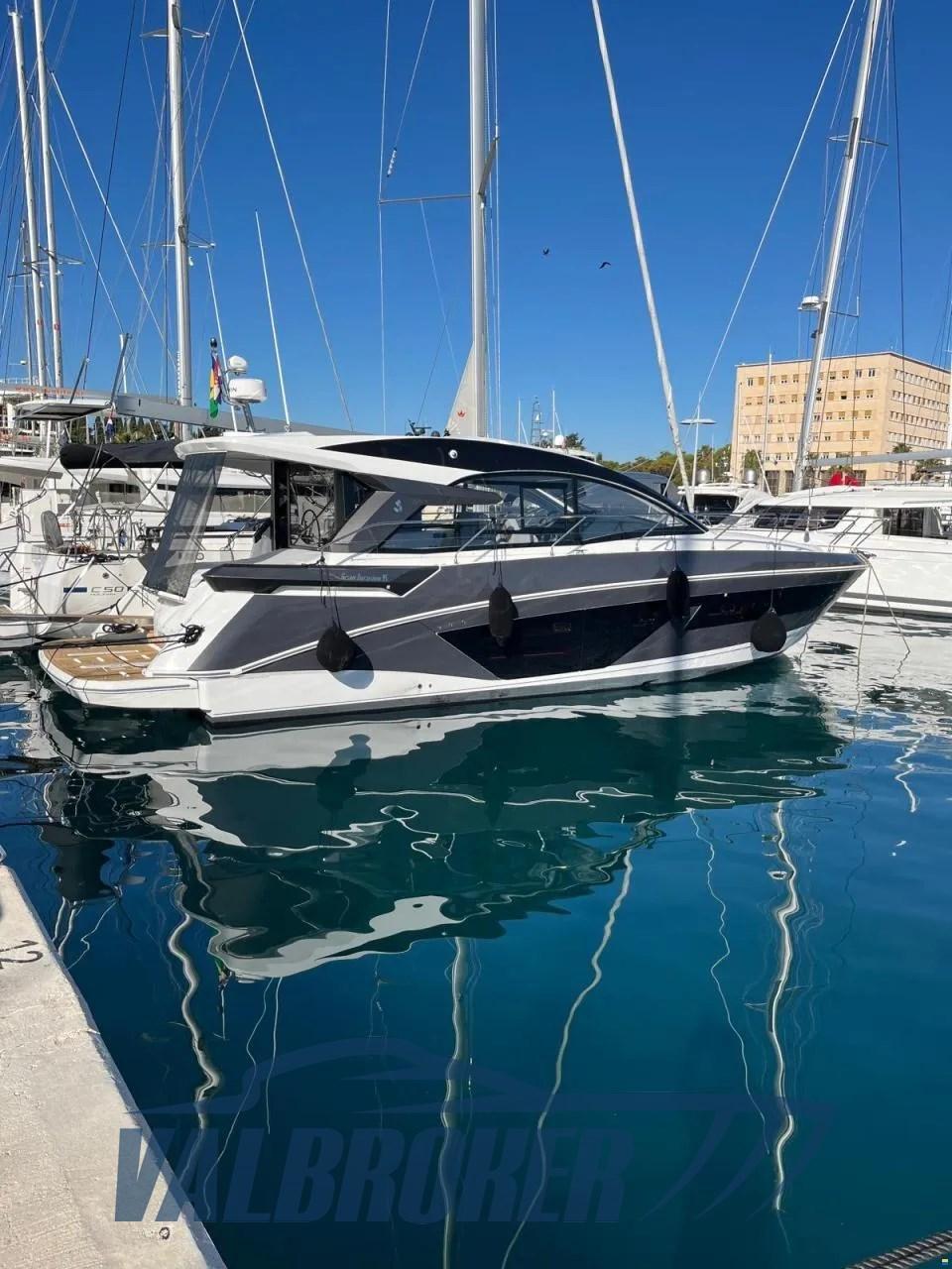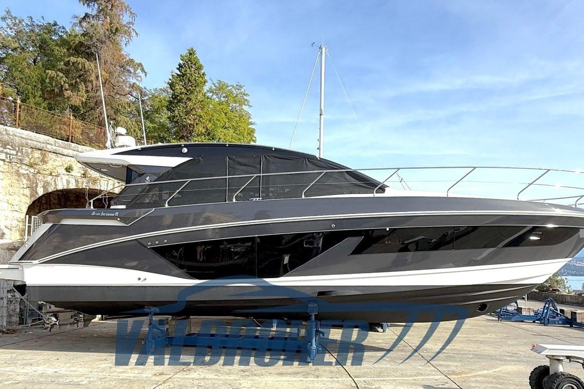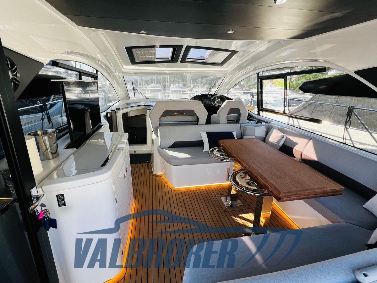 Toit rigide sportif et élégant. Il dispose de grands espaces extérieurs, dont un bain de soleil arrière et une spacieuse plate-forme de bain hydraulique. Sous le pont, il y a trois cabines : double à l’avant, double invité et cabine avec lits superposés.